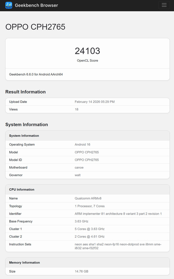 Wydajność GPU również nie uległa zmianie z wynikiem OpenCL wynoszącym 24 103. Nawiasem mówiąc, ten wynik sprawiłby, że 7-rdzeniowy wariant znalazłby się blisko szczytu wśród Poco F8 Ultra i RedMagic 11 Pro. Cierpi na tym jednak wydajność wielordzeniowa. Na podstawie nasze testy porównawczeten 7-rdzeniowy wariant ustępuje swojemu 8-rdzeniowemu rodzeństwu o około 17% w wielordzeniowym Geekbench 6.5.