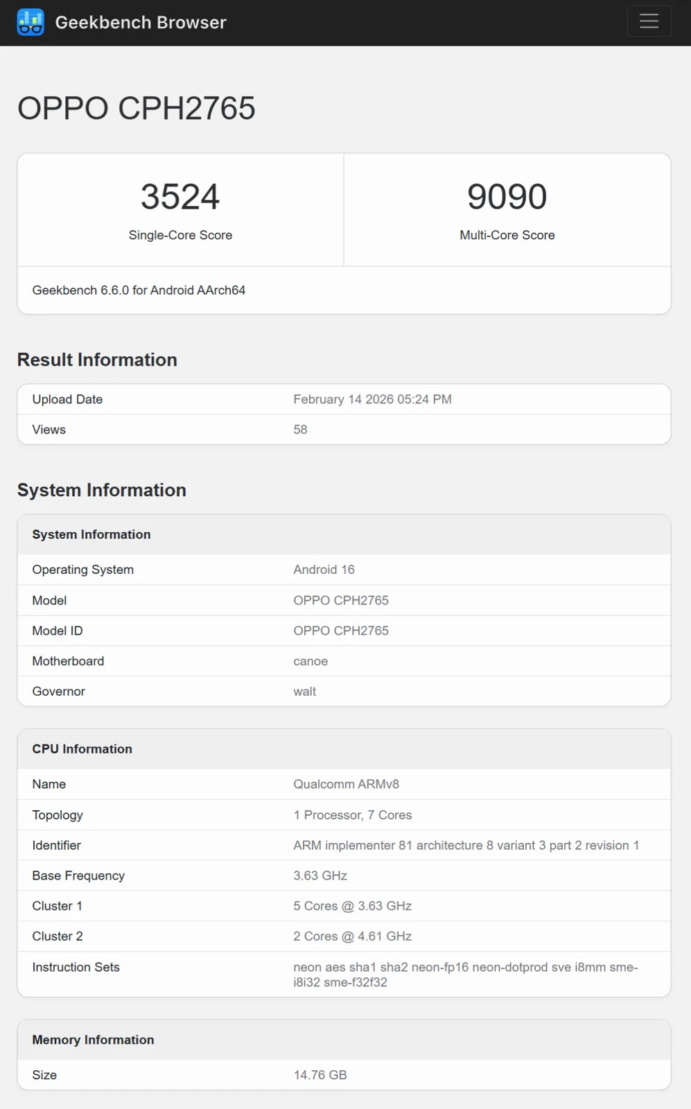 Podobnie jak jego efektywny poprzednik, ten nowy wariant Snapdragon 8 Elite Gen 5 porzuca rdzeń wydajnościowy, aby osiągnąć 7 rdzeni ogółem przy zachowaniu taktowania 3,6 GHz. Podobnie, taktowanie 4,6 GHz pozostaje na rdzeniach Prime. W rezultacie wydajność jednordzeniowa tego nowego wariantu jest zgodna z tym, czego oczekujemy od Snapdragona 8 Elite Gen 5. Mimo to, wynik 3524 punktów plasuje 7-rdzeniowy wariant na drugim miejscu w naszym rankingu Bazie danych Snapdragon 8 Elite Gen 5 tuż przed OnePlus 15.