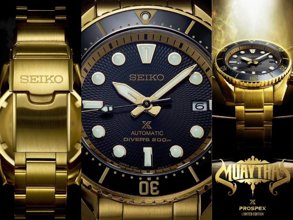 Seiko Tajlandia w pełni ujawniła limitowaną edycję Prospex Muay Thai, którą drażnił wcześnieja ostateczny zegarek okazuje się być odważnym, całkowicie złotym nurkiem zbudowanym wokół czarnej teksturowanej tarczy i pasującej złotej bransolety.