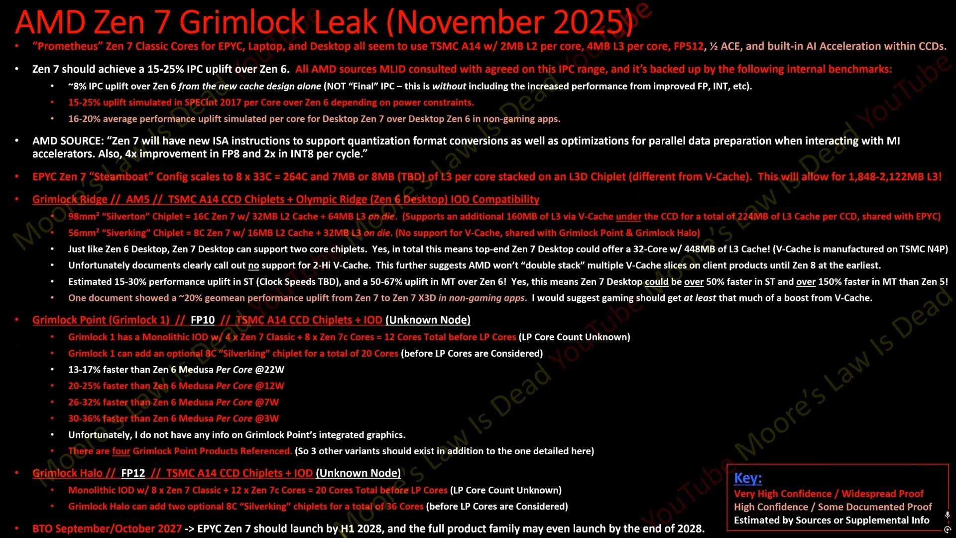 Moore's Law is Dead opublikował ogromny przeciek na temat architektury Zen 7 firmy AMD. Jest to rozwinięcie jego poprzednich Przecieki dotyczące Zen 7 i rzuca światło na niektóre jej specyfikacje, ulepszenia wydajności i wstępną datę premiery. Dotyczy to szerokiej gamy produktów, w tym konsumenckich komputerów stacjonarnych, laptopów i serwerów.