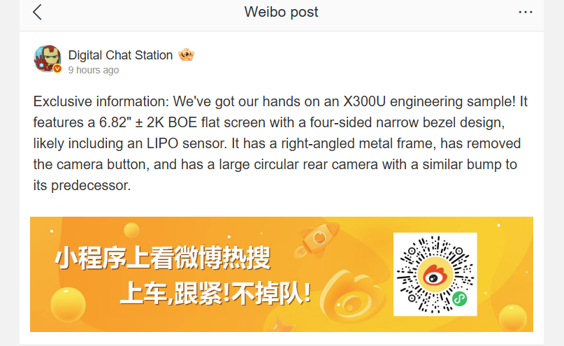 Najnowszy przeciek pochodzi z Digital Chat Stationktóry twierdzi, że vivo X300 Ultra będzie korzystał z płaskiego 6,82-calowego wyświetlacza BOE LTPO OLED o rozdzielczości 2K. Jeśli to prawda, oznaczałoby to odejście od zakrzywionych paneli używanych w X200 Ultra.