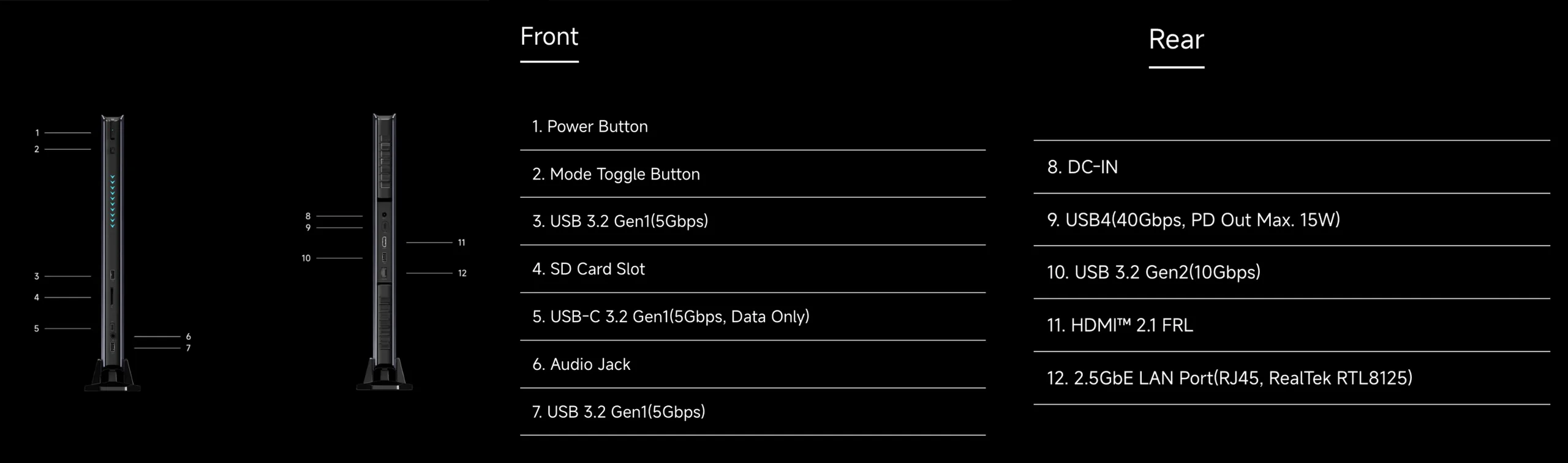 AtomMan G7 Pro nie stroni również od portów, co pokazuje powyższy obrazek. Minisforum wyceniło swój najnowszy mini-PC na 1 359,90 USD jako jednostkę barebone dla tych, którzy chcą przynieść własną pamięć RAM i pamięć masową, z których AtomMan G7 Pro obsługuje do 96 GB DDR5-5200 i 8 TB podzielonych na dwa gniazda M.2 2280. Alternatywnie, Minisforum sprzedaje również wstępnie skonfigurowaną jednostkę z 32 GB pamięci RAM i 1 TB pamięci masowej za 1 679,90 USD.