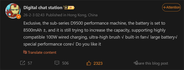 Po pierwsze, Digital Chat Station twierdzi, że pojemność baterii ma wzrosnąć o co najmniej 15% między generacjami. Najwyraźniej ta bateria o pojemności około 8500 mAh będzie również obsługiwać ładowanie przewodowe o mocy 100 W, a także wyświetlacz o wysokiej częstotliwości odświeżania i "specjalnie dostrojony chip wydajności".