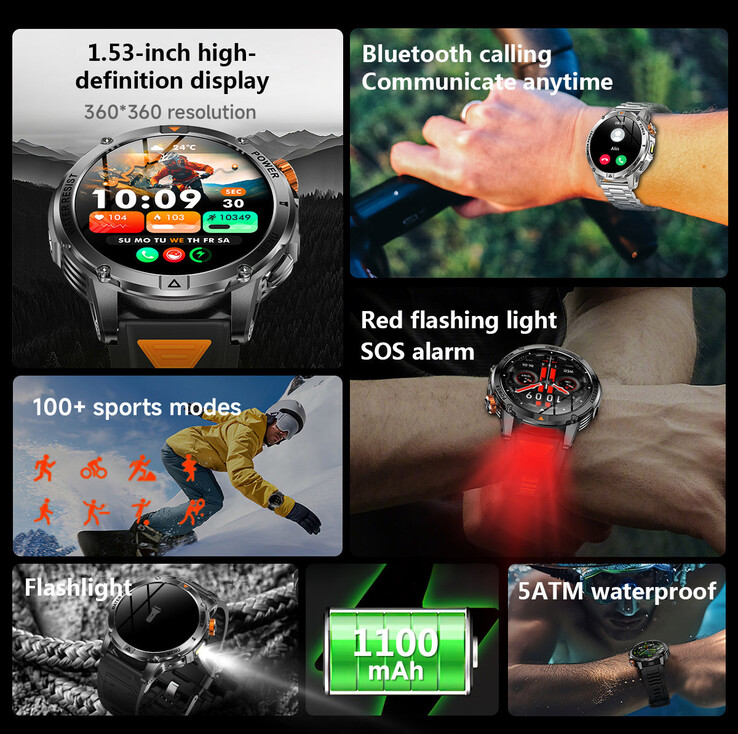 Bateria o pojemności 1100 mAh jest tutaj jednym z największych twierdzeń - firma twierdzi, że zegarek zapewnia ponad 100 dni czasu czuwania. Jak na zegarek tej wielkości, pojemność ta jest znaczna, chociaż procesor 8773EWE jest podstawowym układem o niskim poborze mocy, powszechnym w tej kategorii. Rzeczywiste użytkowanie z aktywnym połączeniem Bluetooth 5.2 prawdopodobnie nie osiągnie tego wieku.
