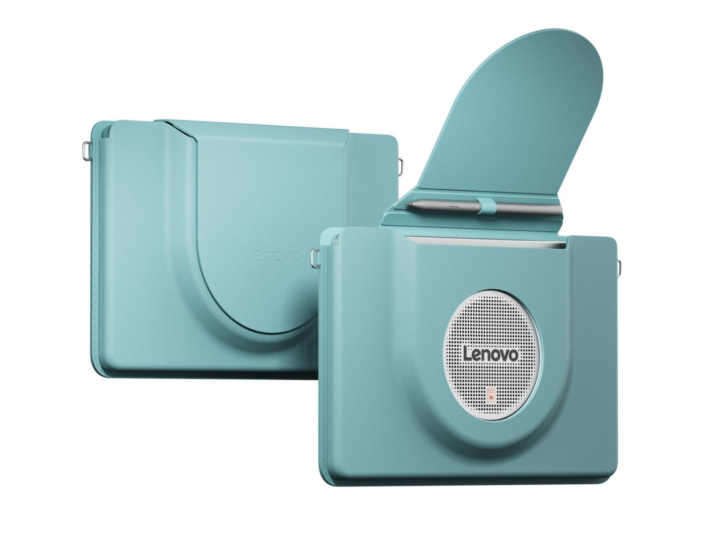 Okrągły obszar zawiera przede wszystkim system głośników "JBL 9-unit PRO". Głośniki te zawierają również pasywne radiatory, aby zmaksymalizować przenoszenie basów. Co więcej, tablet posiada wbudowaną podstawkę, która może być używana w trybie pionowym lub poziomym. Tab Plus Gen 2 wydaje się również obsługiwać aktywny rysik.