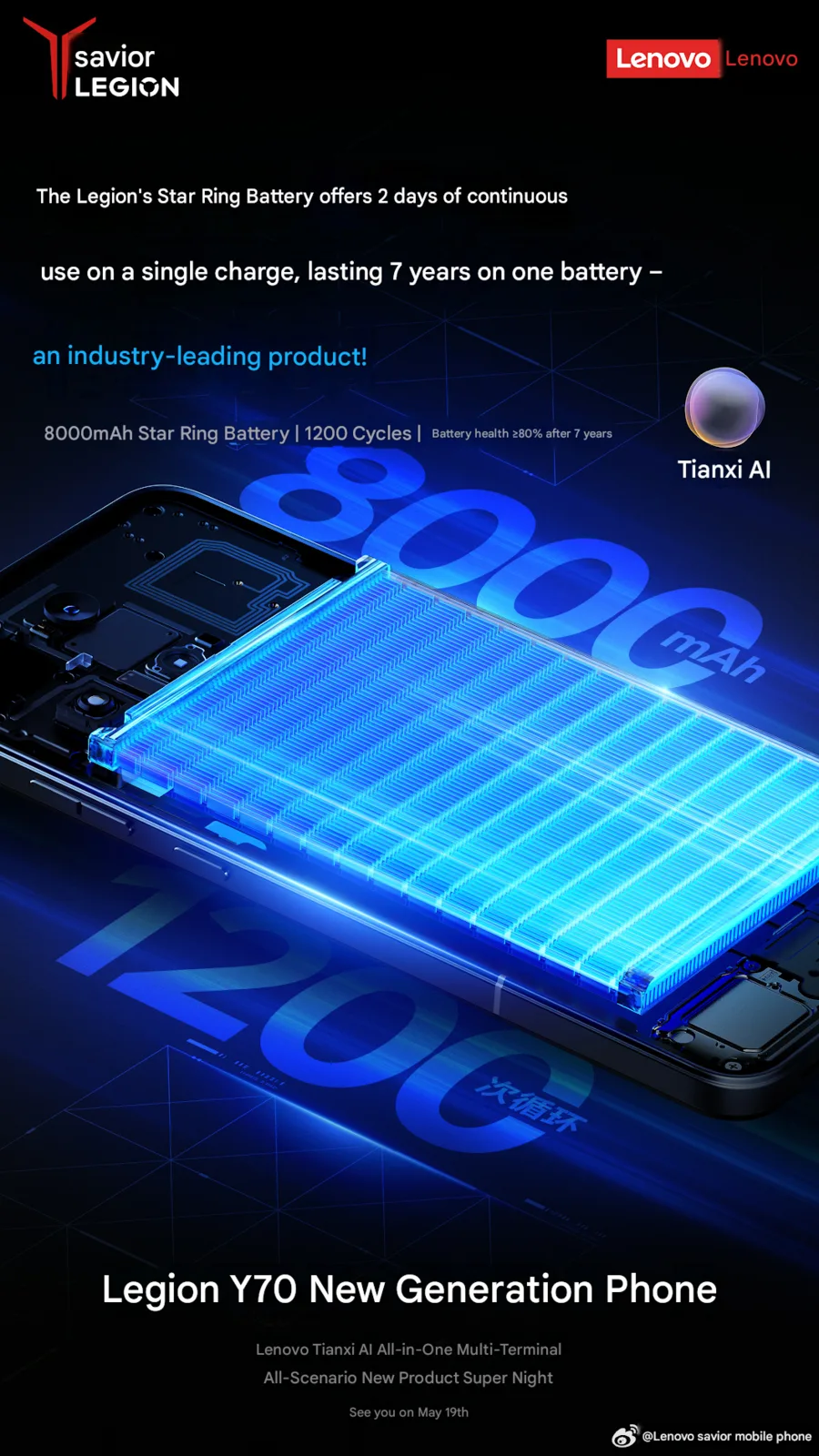 Jak niedawno ujawniono, nadchodzący odświeżony telefon do gier Legion Y70 będzie wyposażony w baterię o pojemności 8000 mAh. Firma twierdzi, że może zaoferować 2-dniowy czas pracy na baterii, ale marka nie podała, czy ten deklarowany czas pracy dotyczy intensywnego czy regularnego użytkowania.