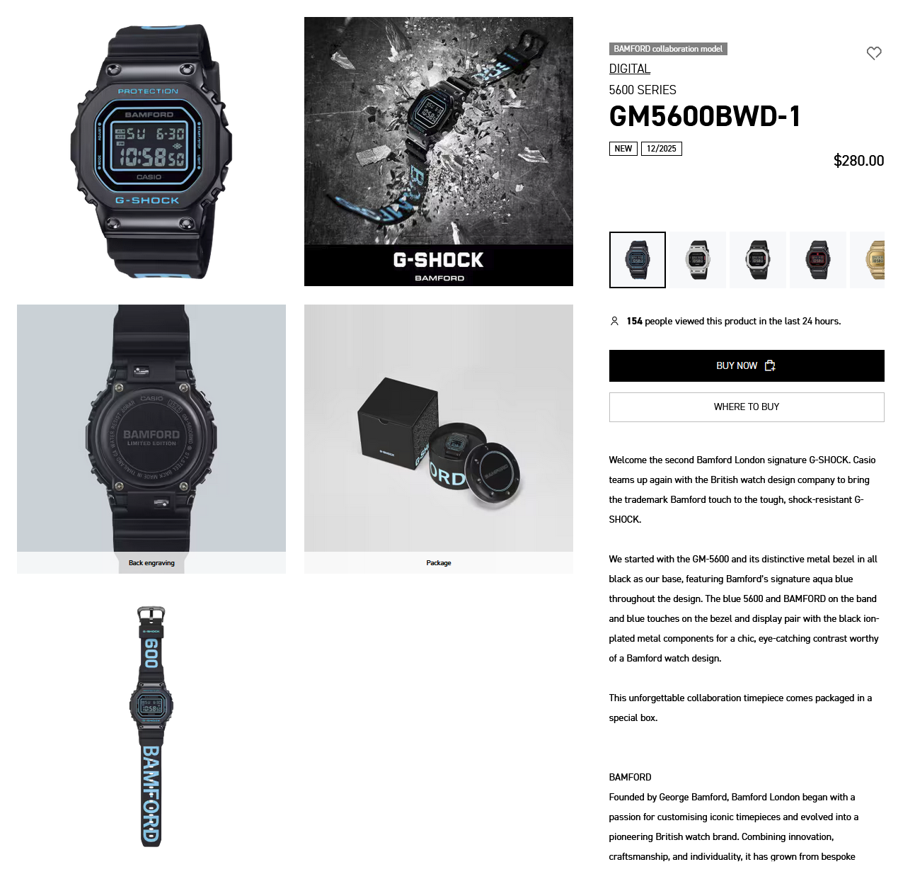 Casio w końcu dokonał jego najnowszą współpracę G-Shock z Bamford London dostępny do kupienia w Stanach Zjednoczonych. Nowy model - oparty na platformie GM-5600 - jest teraz wymieniony w oficjalnym sklepie Casio w USA z ceną detaliczną wynoszącą 280 USD.