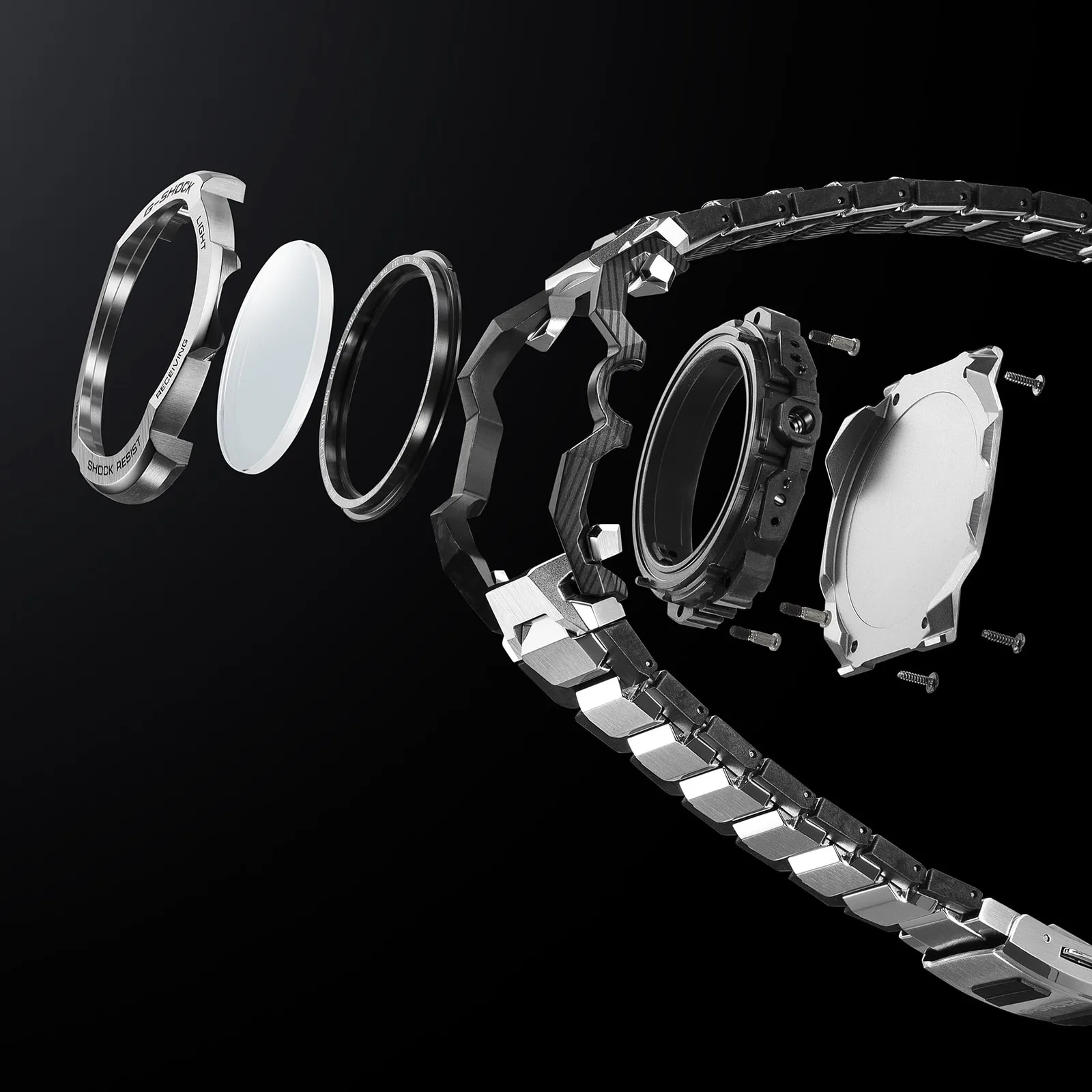 Bransoleta, co ciekawe, podąża za podobnym "hybrydowym" podejściem. Chociaż na pierwszy rzut oka wygląda na w pełni metalową, Casio wspomina, że wykorzystuje warstwową strukturę kompozytową, wykorzystującą stal nierdzewną ze wzmocnionymi elementami żywicznymi w celu zarządzania wagą i uderzeniami. Jednakże, pomimo metalowej bransolety, zegarek waży 178 gramów, co jest nieco ciężkie.