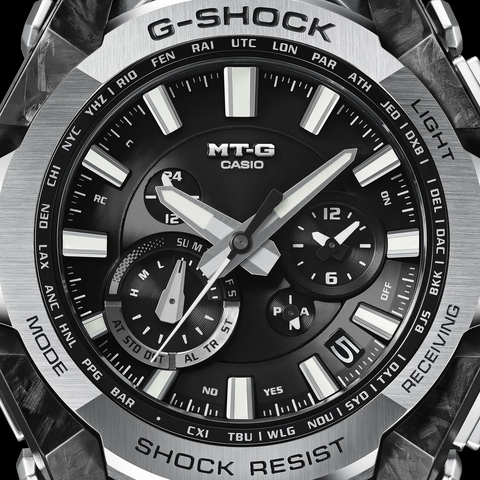 Największą zaletą modelu MTG-B4000D będzie jego warstwowa konstrukcja, która wykorzystuje żywicę wzmocnioną włóknem węglowym ze stalą nierdzewną. Casio opisuje to jako ewolucję swojego dwurdzeniowego podejścia do ochrony, z ramą z włókna węglowego przeznaczoną do pochłaniania wstrząsów, podczas gdy metalowa obudowa zapewnia ogólną sztywność i ochronę. Rozłożone schematy udostępnione przez Casio wyraźnie pokazują, że ramka, bezel i dekiel działają jako oddzielne elementy konstrukcyjne, a nie jako pojedyncza monoblokowa powłoka.