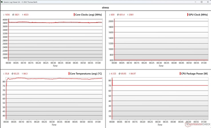 Teraz dochodzimy do słabego punktu Yoga Pro 7 14, ponieważ wysoka wydajność jego procesora w trybie wydajności niestety przeciąża 100-watowy zasilacz. Chociaż nie odnotowaliśmy żadnych problemów podczas grania, zasilacz był zbyt słaby w teście obciążeniowym i bateria musiała nadrobić różnicę. Po godzinie pojemność baterii spadła o 10%. Lenovo naprawdę powinno było dołączyć 130-watowy zasilacz.