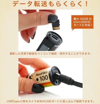 NeoFilm jest dostępny w trzech różnych kolorach, a wszystkie są wzorowane na popularnych filmach. Z tyłu znajduje się mały wyświetlacz o rozdzielczości 160 x 80 pikseli do kadrowania zdjęć, a także pokazuje stan baterii i kartę microSD, którą można włożyć od spodu. Tymczasem z przodu znajduje się mały i ledwo widoczny obiektyw z 8 MP 1/4-calowym czujnikiem CMOS.