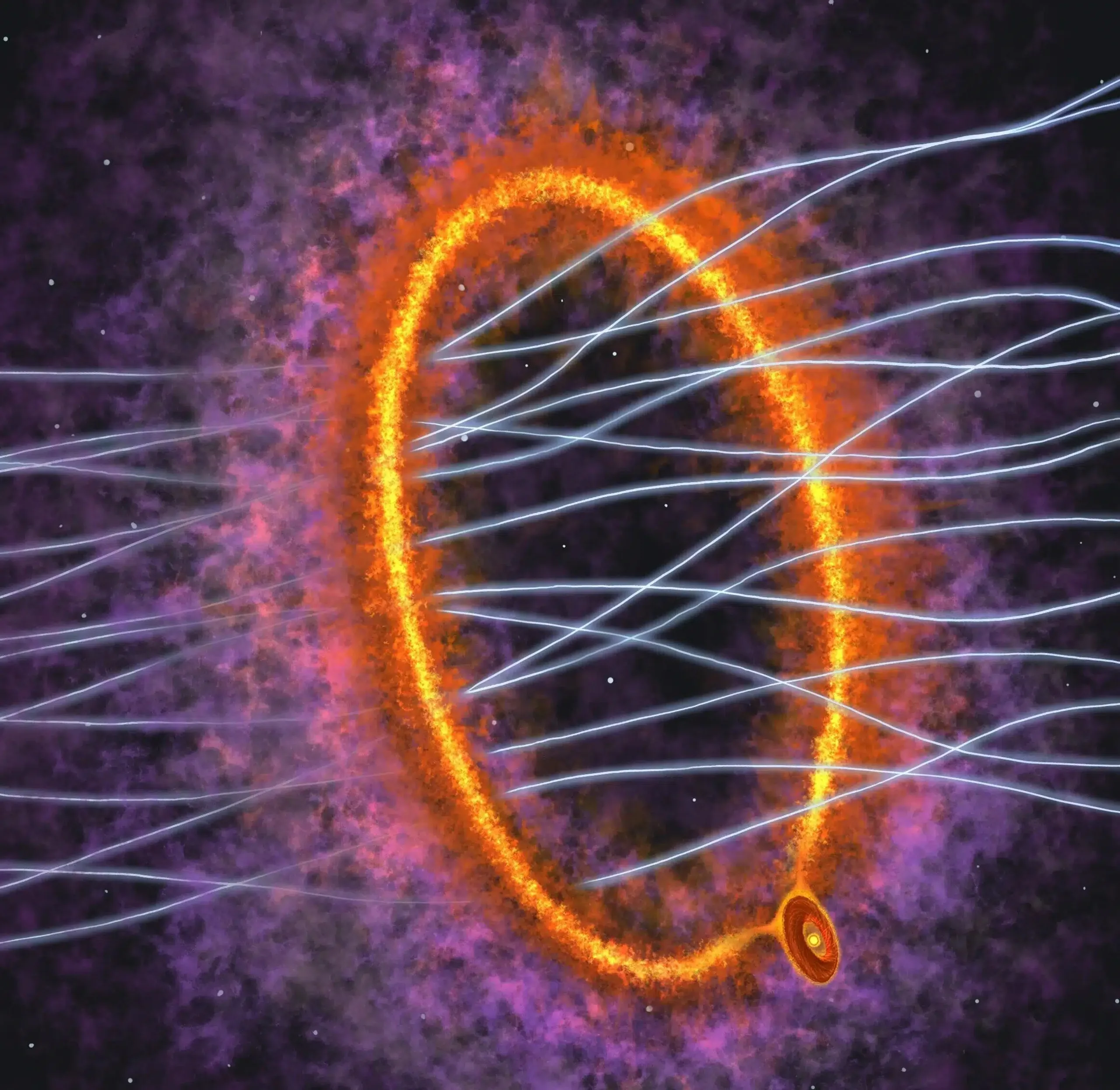 "Nasze dane wykazały, że pierścień ten jest nieco cieplejszy niż jego otoczenie. Stawiamy hipotezę, że jest on wytwarzany przez pole magnetyczne oplatające dysk protogwiazdowy.Zasadniczo jest to "kichnięcie", które obserwowaliśmy w przeszłości, ale na znacznie większą skalę"