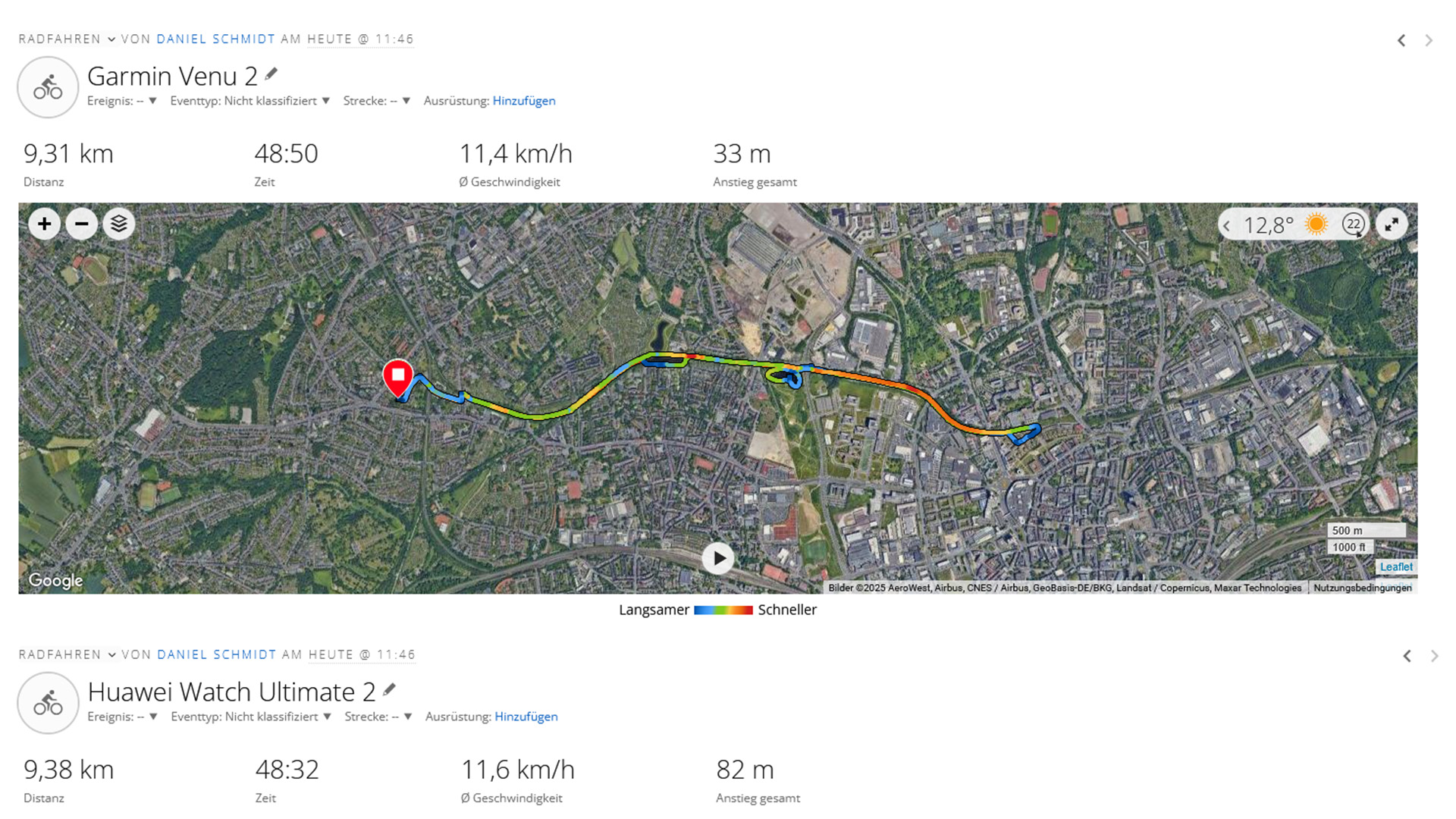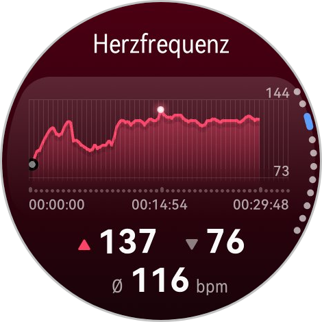 W przypadku tętna używamy paska na klatkę piersiową Polar H10 jako urządzenia referencyjnego. Odchylenie tętna spoczynkowego wynosi jedno uderzenie na minutę, co odpowiada 1,75%. Zmierzyliśmy również tętno wydajnościowe w trzech różnych momentach. W tych testach średnie odchylenie wynosi 0,96 procent, a największe pojedyncze odchylenie to dwa uderzenia na minutę.