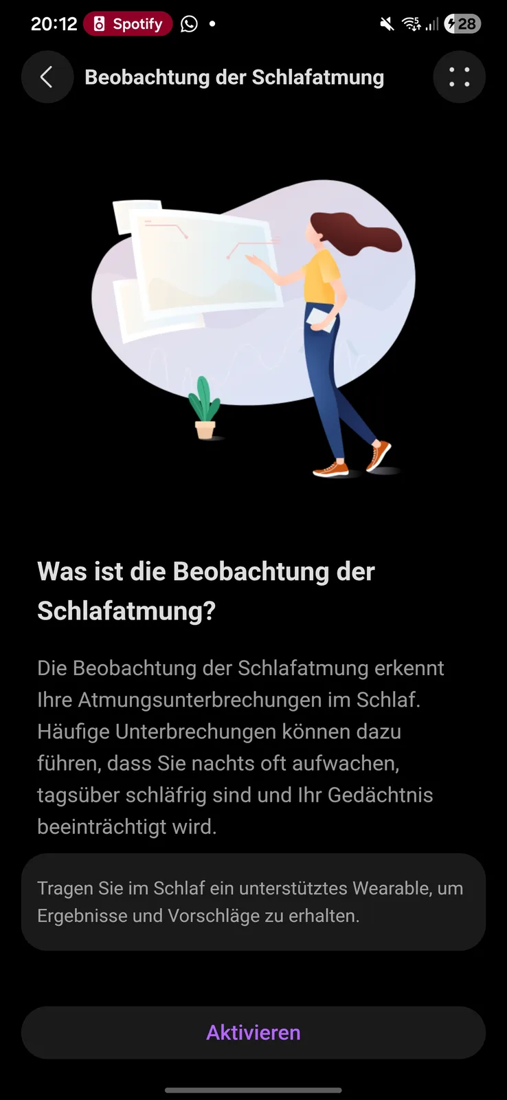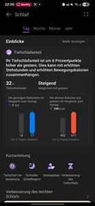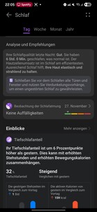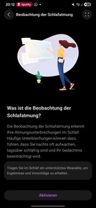 Zegarek śledzi również ciągłość głębokiego snu, jakość oddychania, tętno, nasycenie tlenem i częstość oddechów. Wykrywanie dźwięków snu wymaga sparowanego smartfona w pobliżu. Ogólny sen jest oceniany za pomocą punktacji i systemu gwiazdek, a oprogramowanie zapewnia analizy i zalecenia dotyczące poprawy jakości snu.