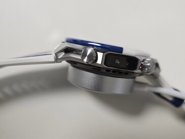 Po prawej stronie znajdą Państwo obrotową i wciskaną koronkę, przycisk, głośnik i czujnik Huawei X-Tap. Po lewej stronie znajduje się kolejny przycisk i czujnik głębokości. 22-milimetrowy pasek można wymienić bez użycia narzędzi.