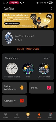 Aplikacja Huawei Health jest wymagana do skonfigurowania i obsługi Watch Ultimate 2. Najnowsza wersja wciąż nie jest dostępna w sklepie Google Play, ale można ją pobrać z innych sklepów z aplikacjami lub bezpośrednio przez przeglądarkę.