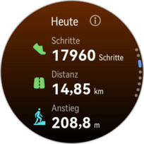 Jeśli funkcja ta jest włączona, zegarek przypomina o regularnym wstawaniu. Watch Ultimate 2 nie tylko liczy kroki, ale także zgłasza przebyty dystans i zdobytą wysokość. Dane dotyczące aktywności można przeglądać według dnia, tygodnia lub miesiąca.