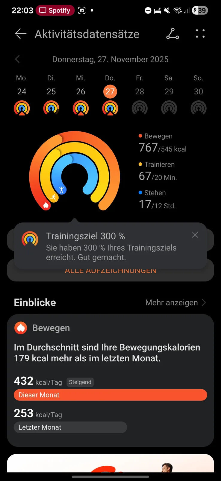 Oprogramowanie dodatkowo podkreśla szersze trendy aktywności.