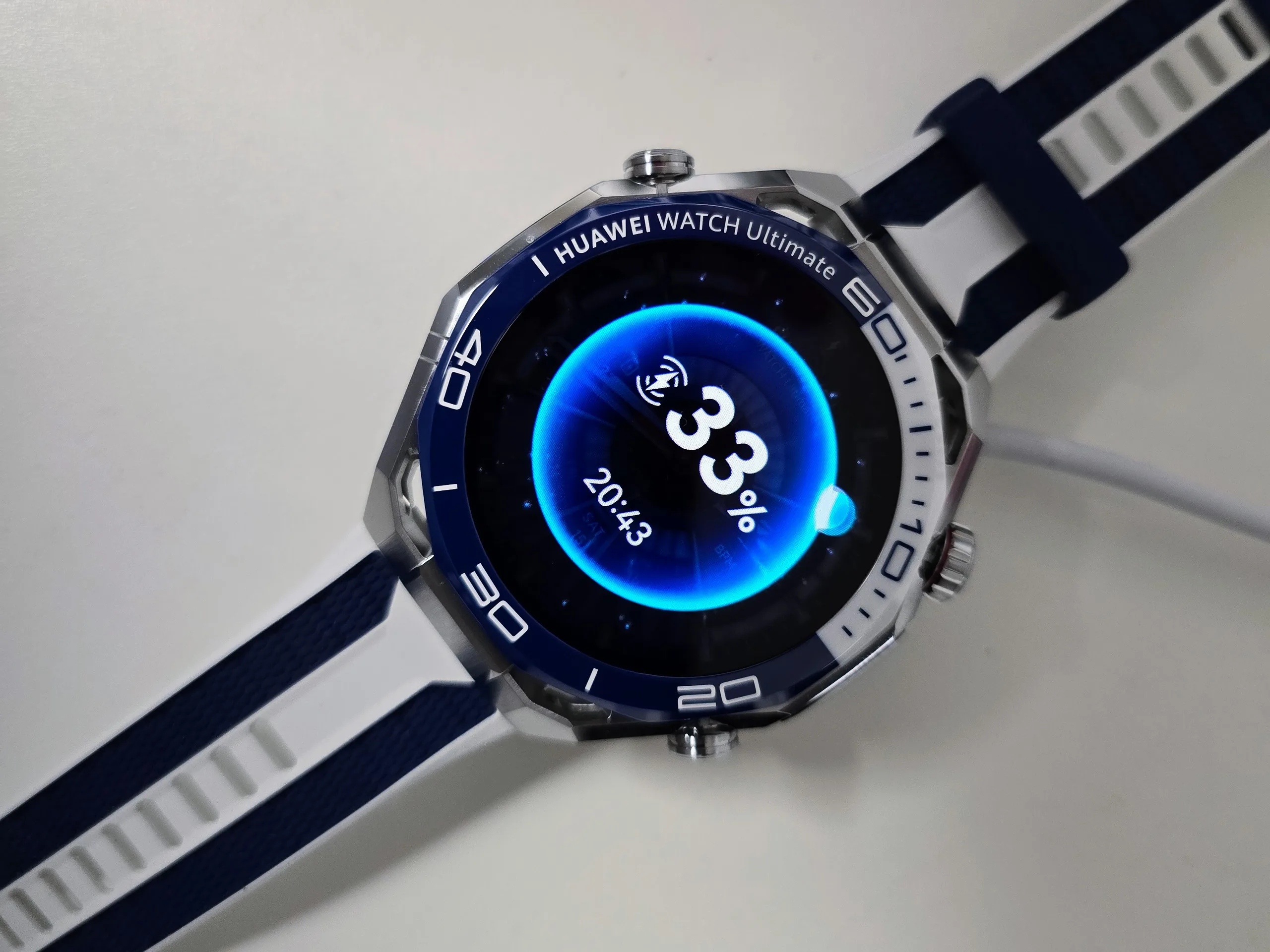 Huawei dołącza baterię o pojemności 867 mAh. Ładowanie odbywa się bezprzewodowo za pomocą podkładki Qi. Korzystając z zasilacza Anker 355, Watch Ultimate 2 osiągnął od 3 do 50 procent w 40 minut, a pełne naładowanie wymagało około 90 minut.