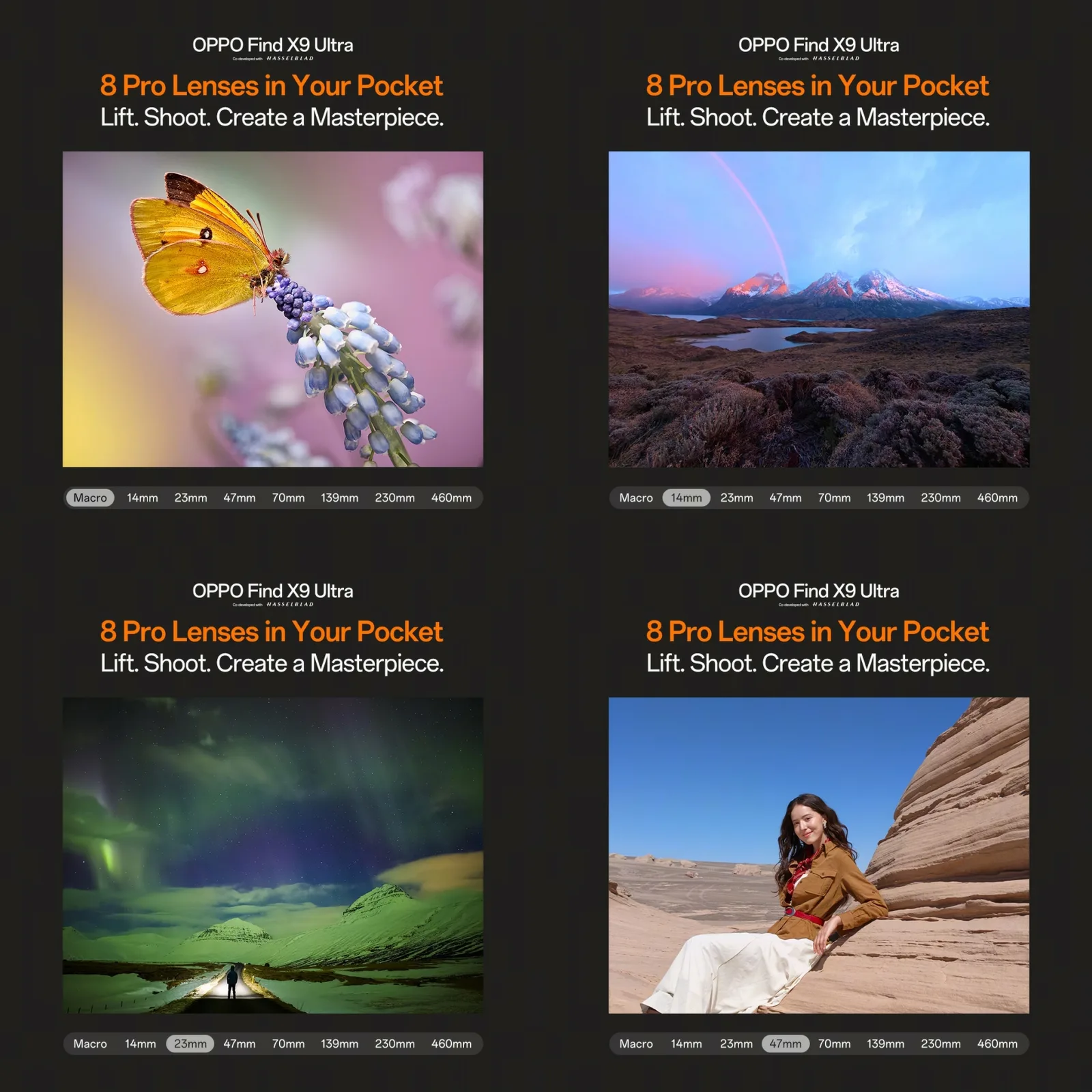 Oficjalnie: Oppo twierdzi, że Find X9 Ultra umieszcza "8 profesjonalnych obiektywów, 14-460 mm" w kieszeni; marketing w stylu iPhone'a?