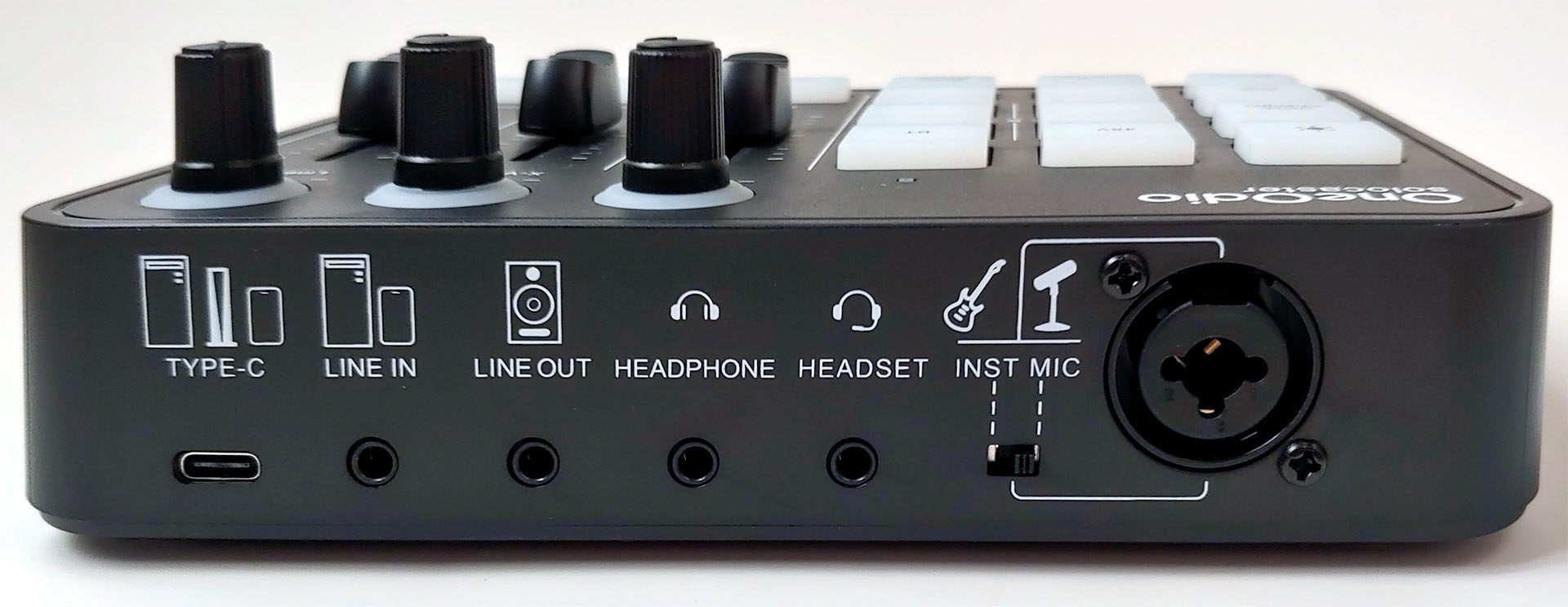 OneOdio Solocaster ma prosty układ, który odzwierciedla profesjonalne deski mikserskie.