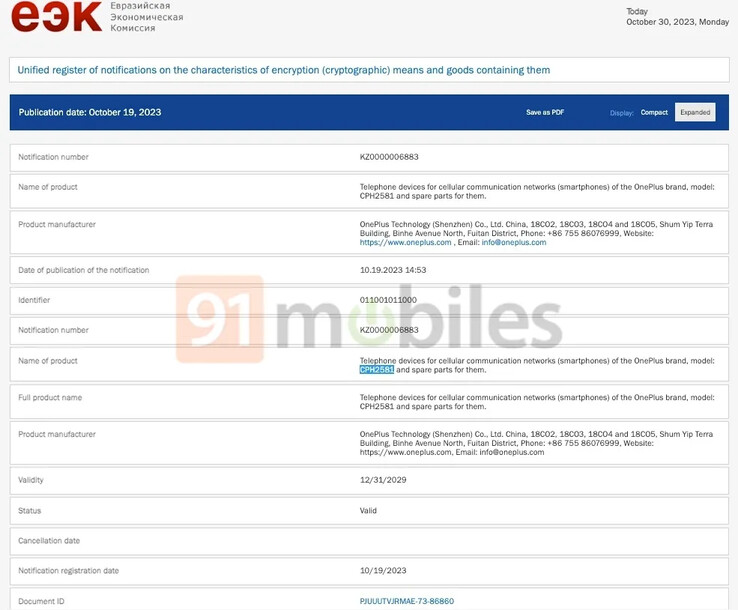 Szczegóły są zawarte w nowym zestawie wyników dla "OnePlus CPH2581", nowy identyfikator również teraz powiązany z nadchodzącym następcą do OnePlus 11 w linku przypisanym do Singapur IMDA bazy danych. Pojawił się on również na stronie https://www.91mobiles.com/hub/oneplus-12-geekbench-eec-snapdragon-8-gen-3/ stronie EEC jako nowy smartfon tej samej marki.