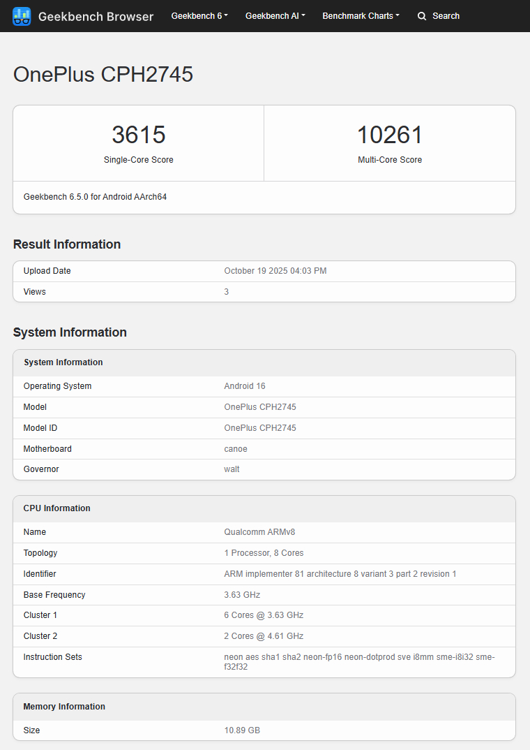 Warto zauważyć, że wyniki te nie dorównują referencyjnemu projektowi Qualcomm i RedMagic 11 Pro. Potencjalnie można to przypisać temu, że OnePlus 15 prawdopodobnie korzysta z przedpremierowego oprogramowania, które nie jest w pełni zoptymalizowane. Co więcej, urządzenia referencyjne Qualcomm mają tendencję do przewyższania wszystkich smartfonów detalicznych korzystających z tych samych chipsetów. Nawiasem mówiąc, Geekbench potwierdza, że OnePlus 15 będzie również wyposażony w 12 GB pamięci RAM. Jeśli jego poprzednik jest czymś, co można przejść, to OnePlus zaoferuje również drugą konfigurację pamięci z co najmniej 16 GB pamięci RAM do dyspozycji.