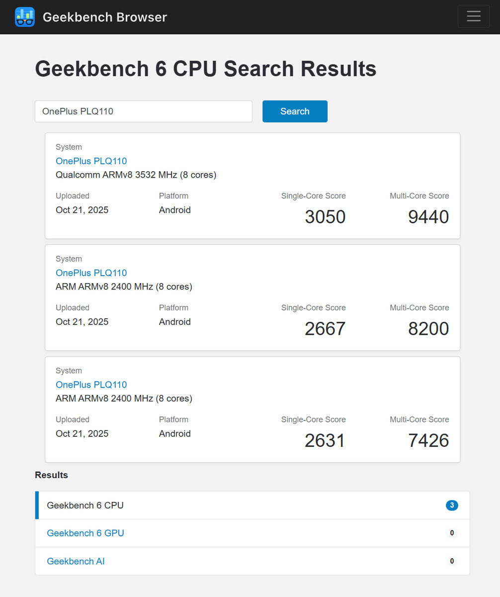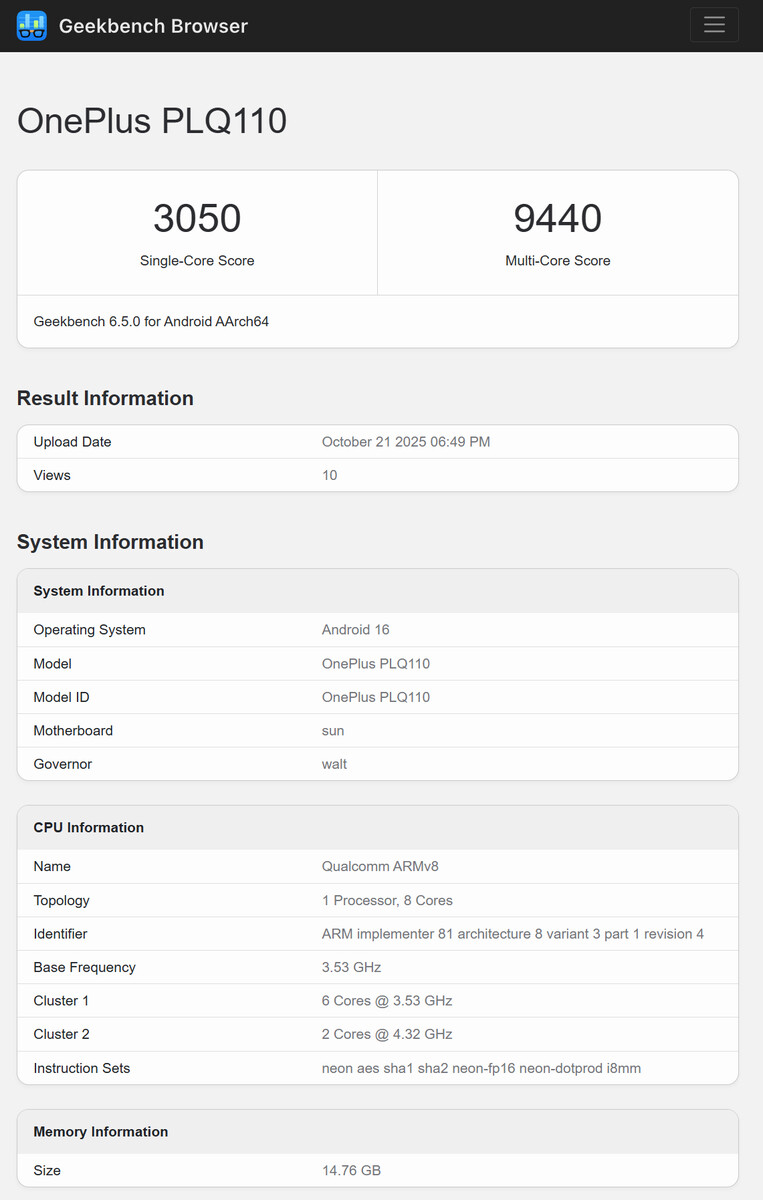 W międzyczasie OnePlus Ace 6 pojawił się teraz w Geekbench. Podążając śladami onePlus 15onePlus Ace 6 pozostaje w tyle za swoim rodzeństwem w jednordzeniowych i wielordzeniowych testach porównawczych Geekbench 6. Mając to na uwadze, poleganie tego ostatniego na Qualcomm Snapdragon 8 Elite chipset stawia go na równi z istniejącym OnePlus 13 (obecnie 849,99 USD na Amazon).