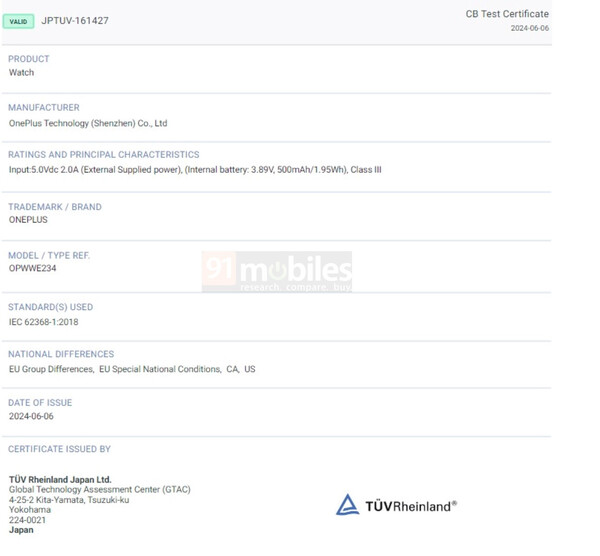 Niemniej jednak, OnePlus certyfikował coś, co wydaje się być OnePlus Watch 3 do sprzedaży zarówno z Bureau of Indian Standard (BIS), jak i TÜV Rheinland. W szczególności para donosi, że OnePlus uzyskał certyfikat "OPWWE234", który potwierdza, że jest to smartwatch. Dla porównania, chociaż żaden z nich nie potwierdza nazwy detalicznej urządzenia, jego numer modelu odzwierciedla numer modelu OnePlus Watch 2któremu OnePlus przypisał numer modelu "OPWWE231".