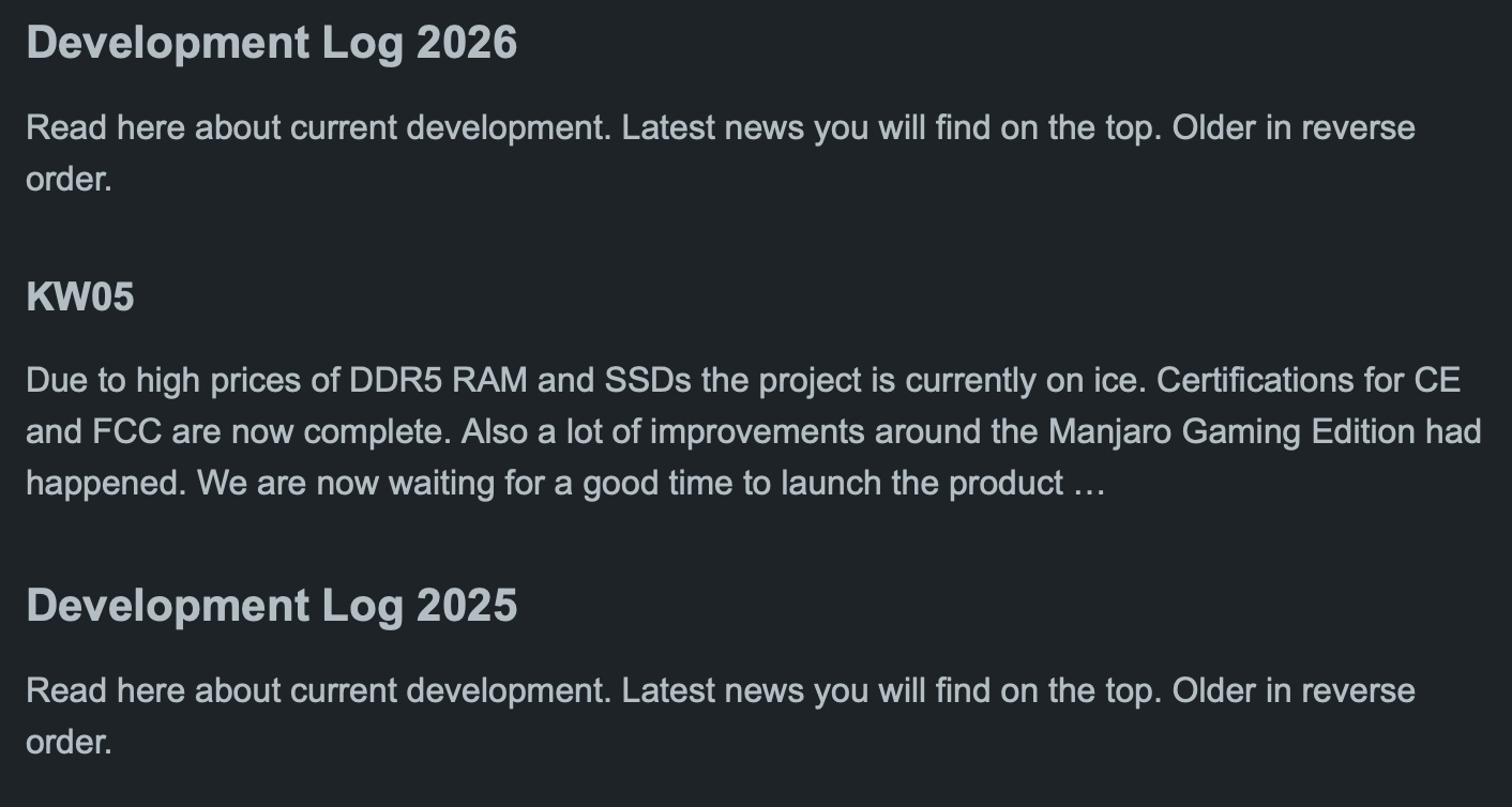 Manjaro Gaming Edition poczyniło jednak znaczne postępy, jak ujawnił philm z zespołu Manjaro. Przyznano również certyfikaty CE i FCC, co jest zdecydowanie dobrą wiadomością. Wygląda na to, że jeśli i kiedy łańcuch dostaw doczeka się lepszych dni, projekt handhelda Neo powinien wrócić na właściwe tory.