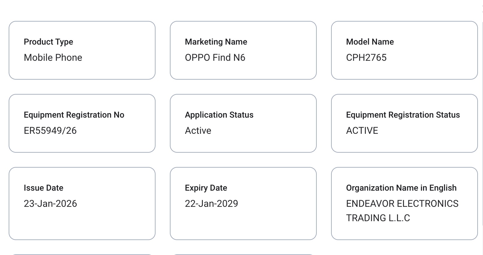 Nowy wpis w organie regulacyjnym TDRA w Zjednoczonych Emiratach Arabskich potwierdza numer modelu globalny Oppo Find N6. W przeciwieństwie do chińskiego modelu, który nosi numer modelu "PLP110", globalny wariant jest wymieniony jako "CPH2765"