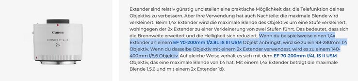 Producenci aparatów fotograficznych, tacy jak Canon pokazują, że marketing może być również bardziej uczciwy. Jeśli chodzi o telekonwertery do aparatów systemowych, zazwyczaj wyjaśniają i jasno określają, w jaki sposób konwerter wpływa na ogniskową i przysłonę obiektywu. Na przykład obiektyw 70 mm f/2,8 staje się obiektywem 98 mm f/4 z telekonwerterem 1,4x, ale obiektywem 140 mm f/5,6 z konwerterem 2x. Tak więc przy dwukrotnym zoomie tracą Państwo dwa pełne stopnie światła.