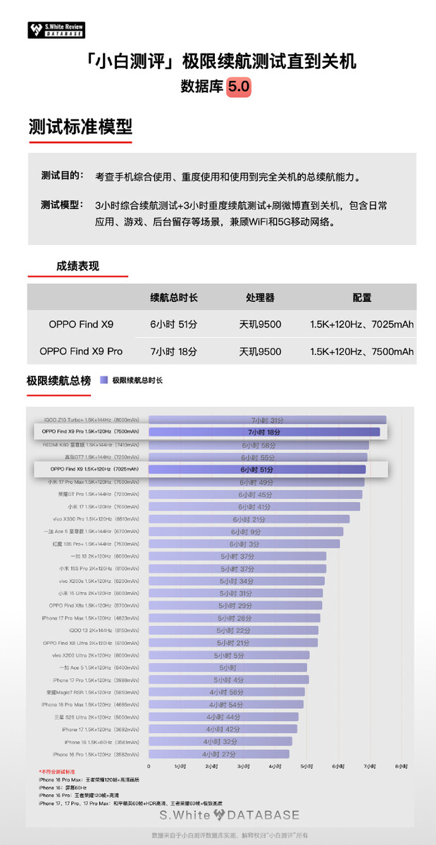 Zgodnie z testami przeprowadzonymi przez Novice Evaluation, Oppo Find X9 Pro może oferować lepszą wydajność baterii niż jakiekolwiek inne nowe flagowe urządzenie na rynku. Podczas gdy seria Find X9 ma dopiero oficjalnie zadebiutować, zarówno Find X9, jak i Find X9 Pro są już testowane w Chinach, a Find X9 Pro wypada najlepiej w testach baterii.