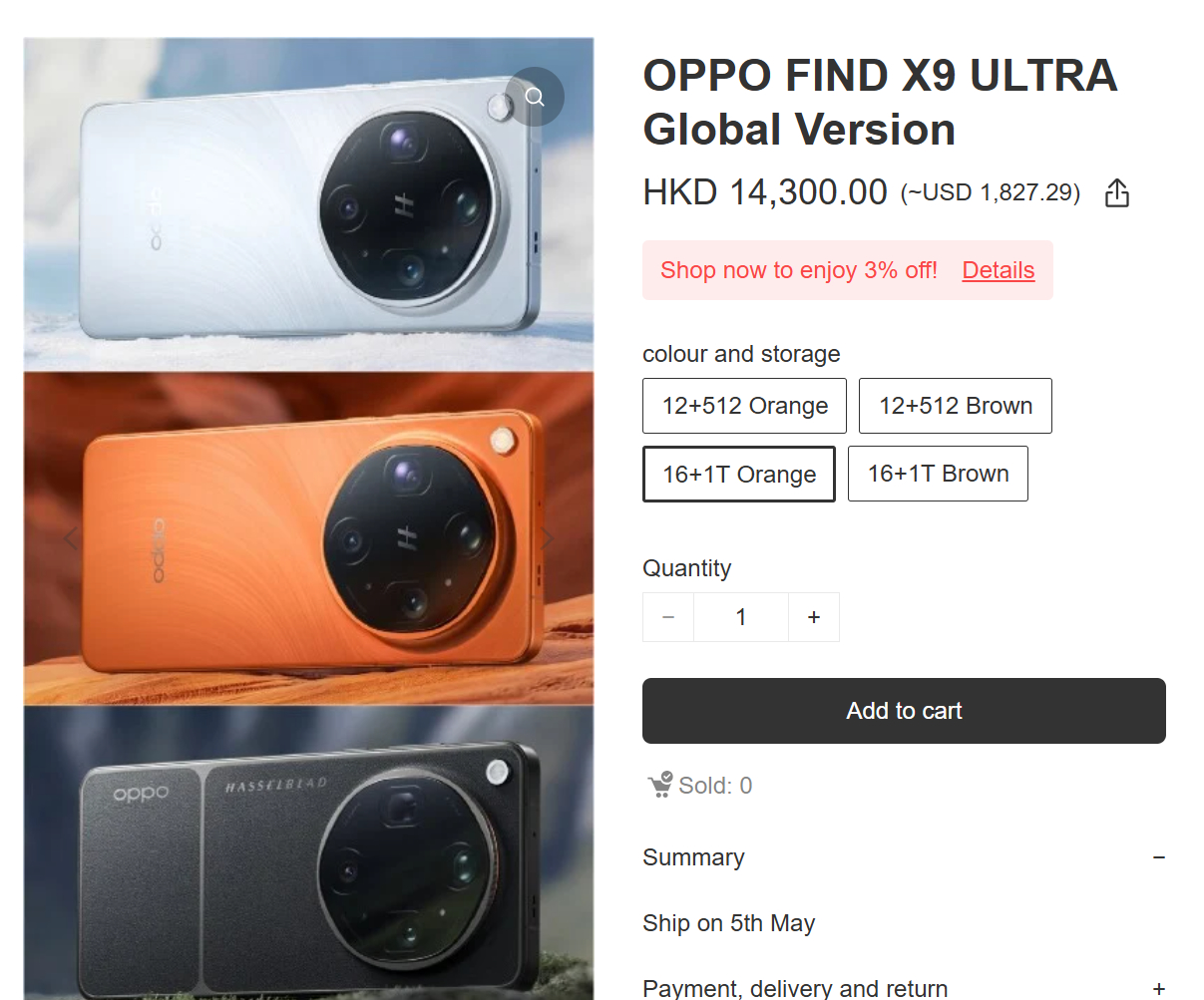W tym celu Find X9 Ultra zaczyna się od 1310 USD z chińskim oprogramowaniem w Average Dad, ale 1724 USD z oprogramowaniem globalnym. Podobnie, Trinity Electronic pobiera ponad 150 USD więcej za globalne SKU Find X9 Ultra. Ponadto obaj importerzy sprzedają Find X9 Ultra z maksymalnie 16 GB pamięci RAM i 1 TB pamięci masowej z preinstalowanym globalnym oprogramowaniem.