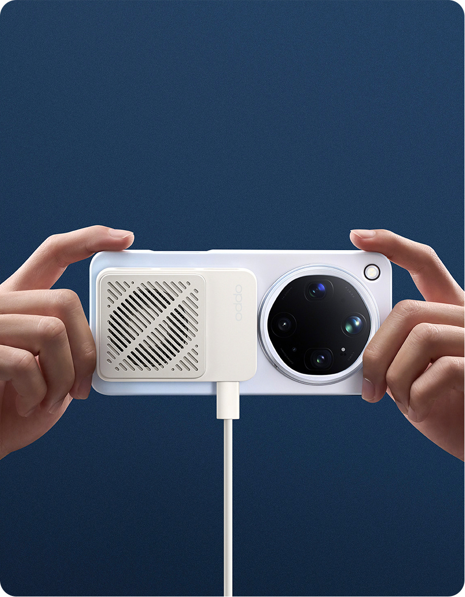 Odświeżona bezprzewodowa ładowarka magnetyczna o mocy 50 W i zestaw chłodzący to ostatnie potwierdzone akcesorium, które doczeka się globalnego debiutu. Oppo wprowadziło je wraz z Find N6, a to urządzenie chłodzące jest sparowane z podstawką, dzięki czemu pełni podwójną funkcję ładowarki bezprzewodowej.
