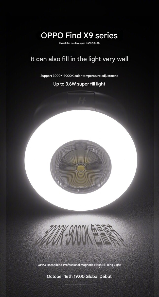 Poza tym Oppo ujawniło magnetyczne akcesorium do oświetlenia wypełniającego dla serii Find X9. Obiecuje ono oświetlać sceny z natężeniem do 2200 luksów, a Oppo podkreśla, że użytkownicy mogą regulować temperaturę barwową w zakresie od 3000 do 9000 kelwinów. To akcesorium powinno również współpracować z OnePlus 15 i wybranymi modelami iPhone'a (silikonowe etui iPhone 17 Pro MagSafe obecnie 37 USD na Amazon).