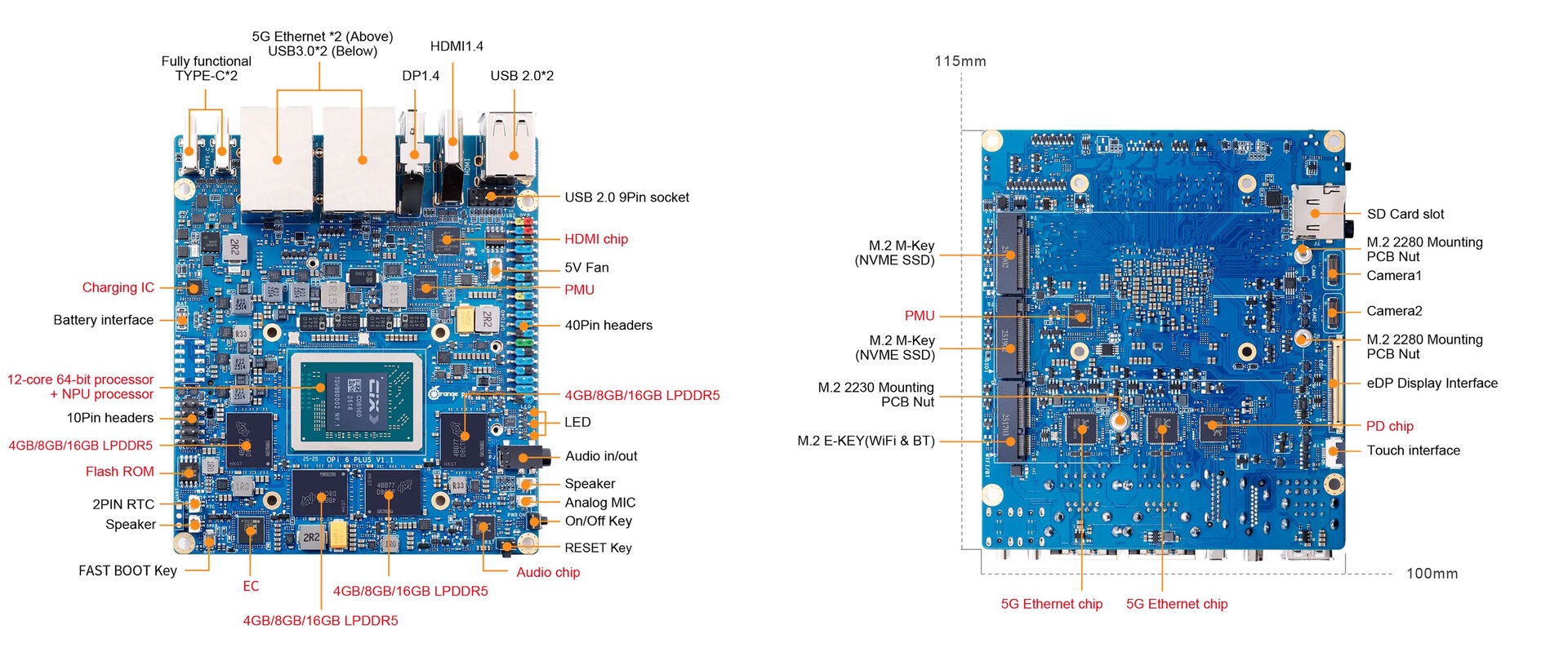 Orange Pi 6 Plus to nowy komputer jednopłytkowy, który jest reklamowany ze szczególnie wysoką wydajnością dla aplikacji AI. Dlatego też posiada procesor NPU o wydajności do 45 TOPS. To stawia Orange Pi 6 Plus na tym samym poziomie, co obecne chipsety AMD i Intel, przynajmniej pod względem wydajności NPU. Na przykład AMD Ryzen AI 9 HX 370 ma wydajność SI na poziomie 40 TOPS. Tak wysoka wydajność AI może być przydatna do uruchamiania różnych modeli AI lokalnie na SBC. Przykładowo, sprawdzanie na żywo obrazu z kamery pod kątem oznak pożaru w odległej lokalizacji może być możliwym przypadkiem użycia.