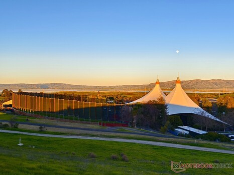 Na stronie Apple główną atrakcją było dla mnie cappuccino z logo Apple, podczas gdy w Google było to zdecydowanie otoczenie skąpane w kolorach stopniowego zachodu słońca, uzupełnione później jasno świecącym księżycem w pełni. Nawet po zmroku obszar wokół Google Visitor Center był interesujący, na przykład Orb, w którym udało mi się uchwycić pełnię księżyca.