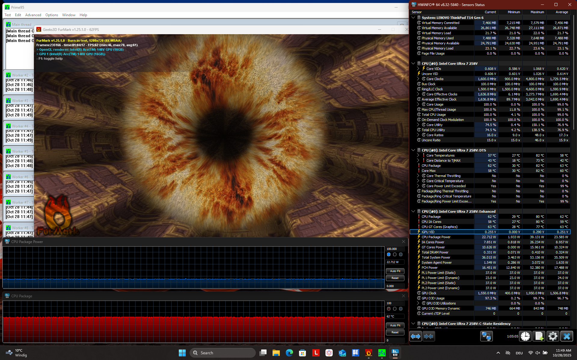 W teście obciążeniowym Lenovo ThinkPad T14 G6 Intel utrzymuje swoją wydajność bez żadnego dławienia.