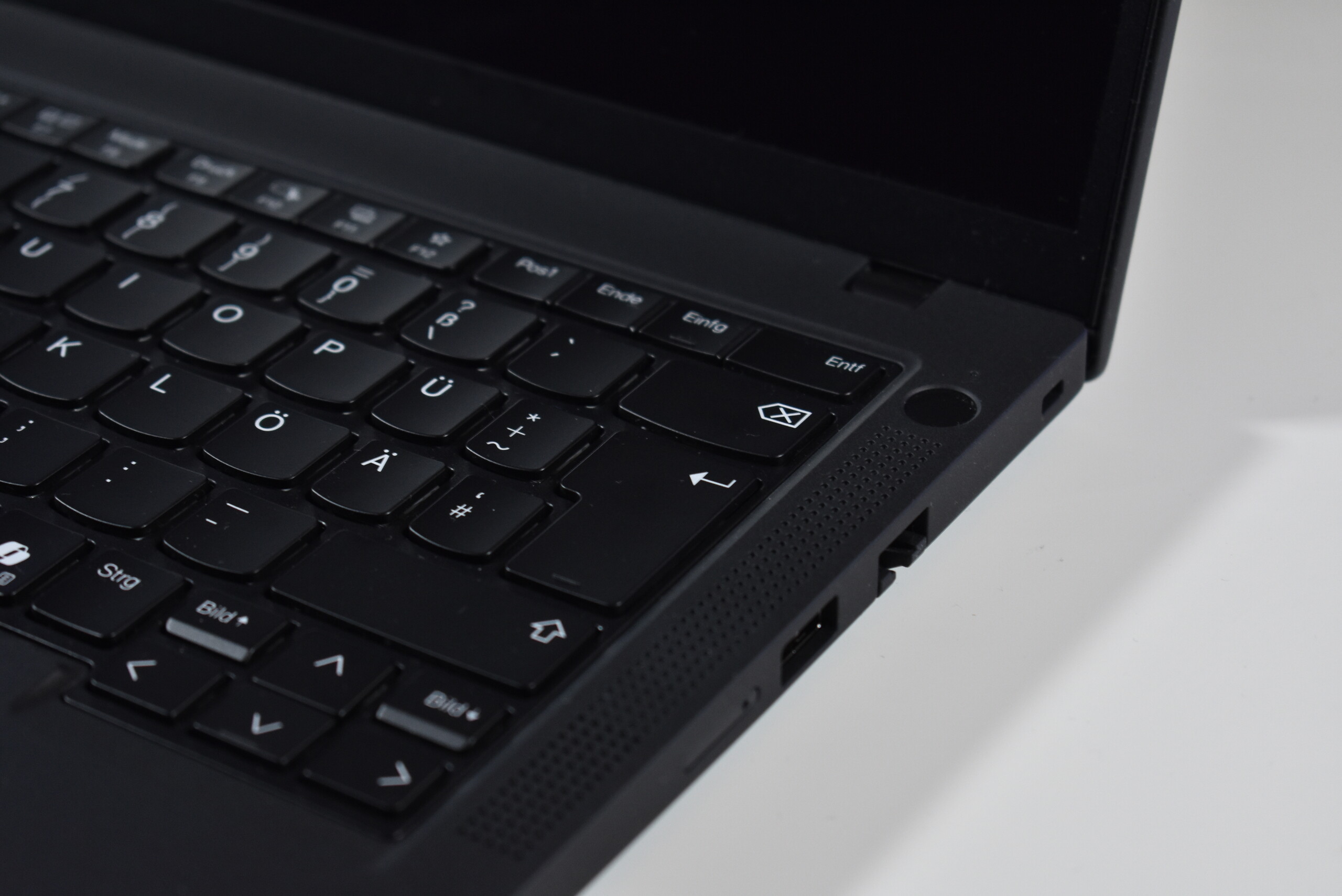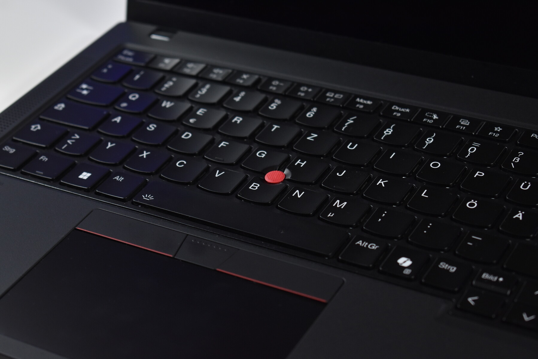 Proszę nie zadzierać z dobrem: Klawiatura Lenovo ThinkPad T14 Gen 6 pozostaje niezmieniona. Zaokrąglone klawisze Chiclet o skoku 1,5 mm zapewniają bardzo wygodne pisanie, dzięki czemu pisanie długich tekstów, takich jak ta recenzja, jest przyjemne. Układ klawiatury jest jednym z najlepszych na rynku, z ładnie rozmieszczonymi klawiszami strzałek i zgrupowanymi klawiszami F. Dodatkowo, klawiatura posiada dwustopniowe, białe podświetlenie LED, dzięki czemu pisanie w ciemności jest komfortowe.