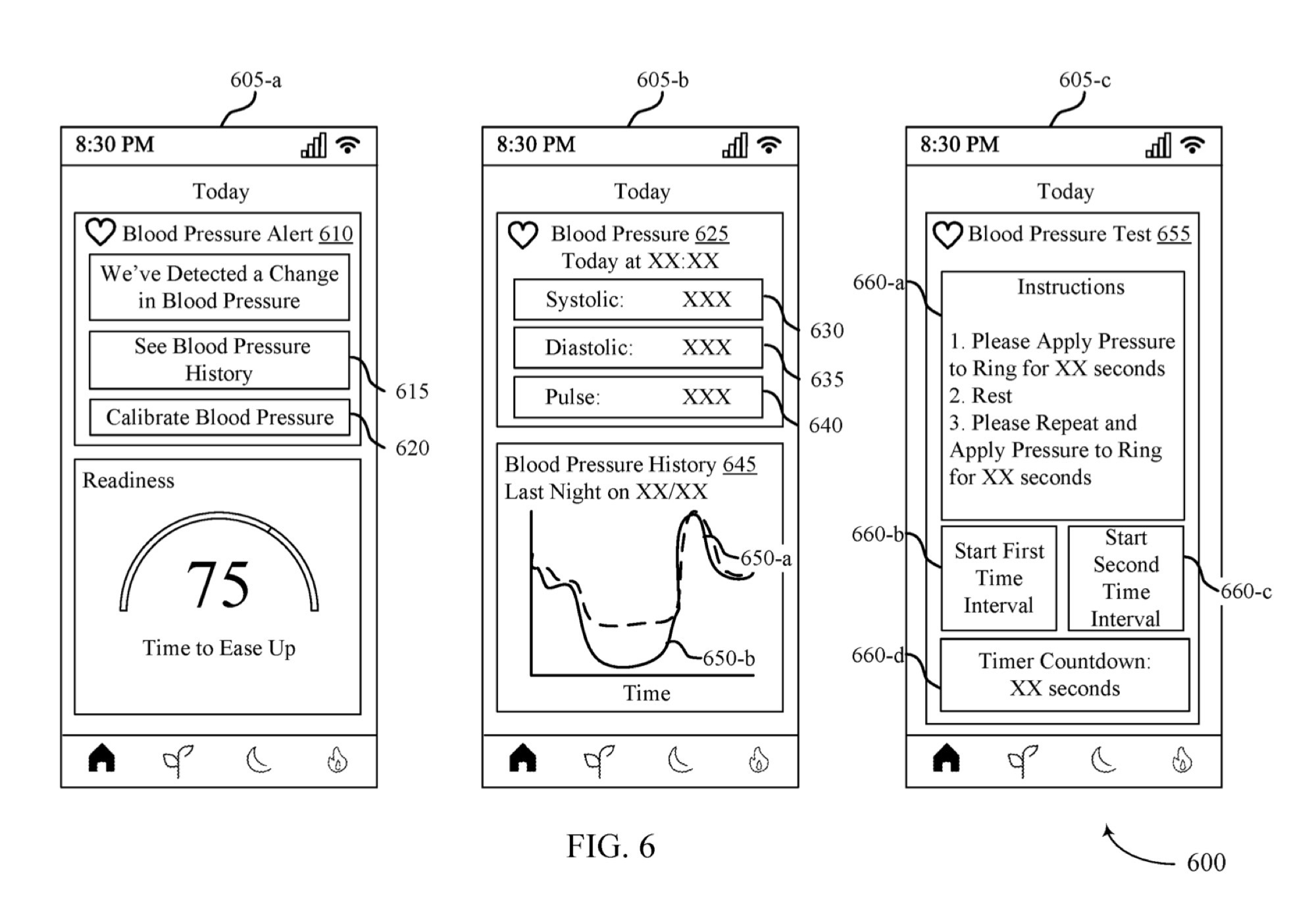 Oura złożyła wniosek patentowy w Urzędzie Patentów i Znaków Towarowych Stanów Zjednoczonych (USPTO) w dniu 1 listopada 2023 r., który został przyznany 17 lutego 2026 roku. Patent ten opisuje metodę synchronizacji danych z wielu urządzeń w celu określenia ciśnienia krwi. Patent obejmuje różne typy urządzeń; oprócz inteligentnych pierścieni opisuje również kamery smartfonów, smartwatche i czujniki noszone na ciele, które mogą potencjalnie dostarczać dane dla tego systemu