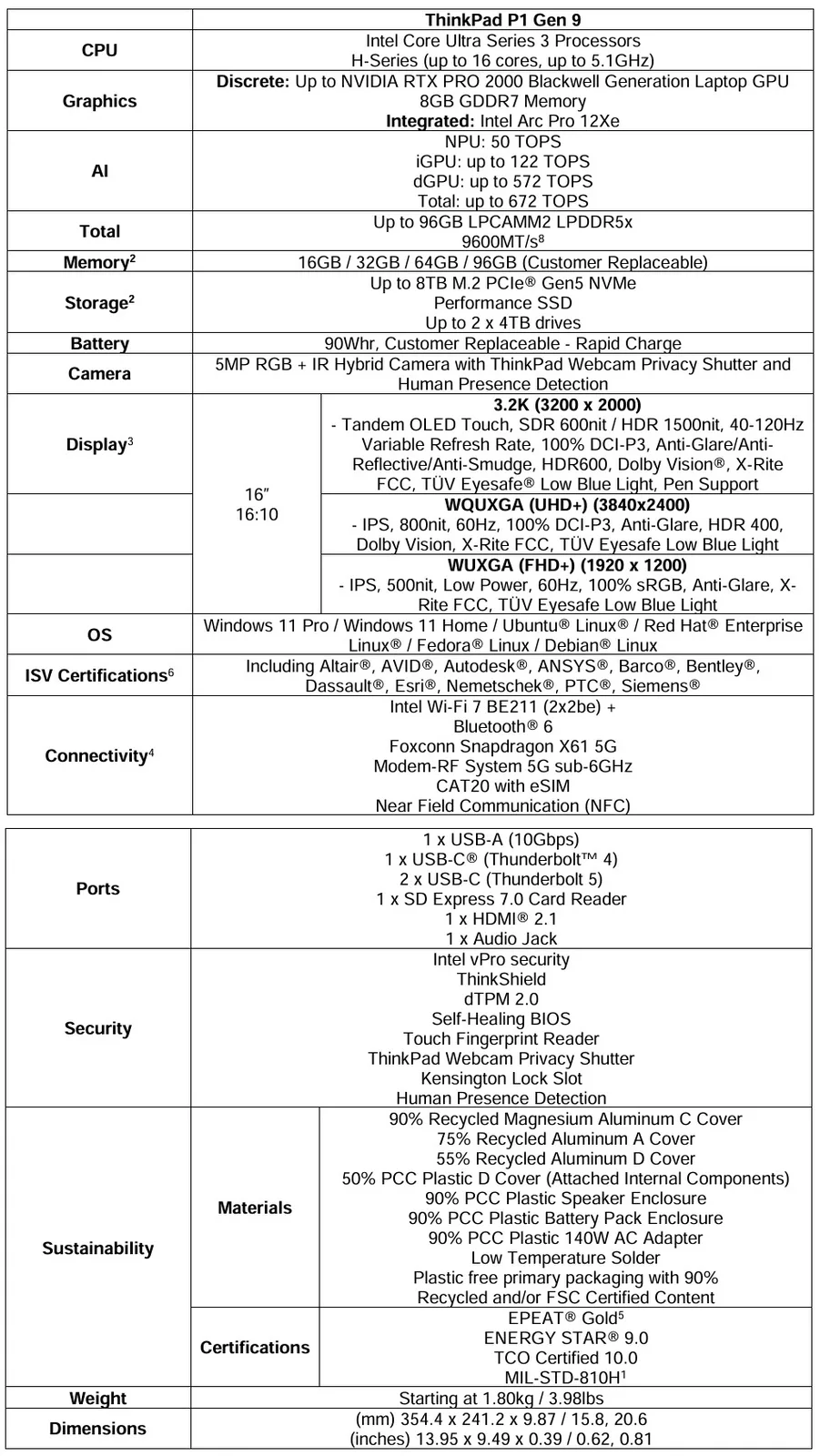 Lenovo ThinkPad P1 Gen 9 będzie dostępny w czerwcu 2026 roku. Lenovo nie ogłosiło jeszcze żadnych cen.