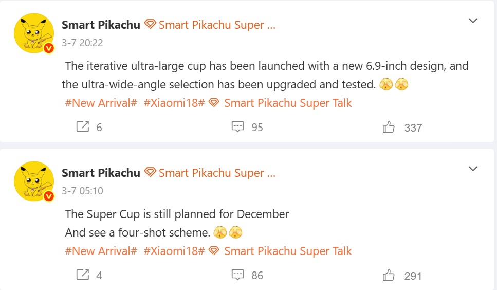 W Chinach leaker Smart Pikachu skomentował serię Xiaomi 18 kilka dni temu i zasugerował, że możemy spodziewać się Xiaomi 18 Ultra ponownie w grudniu, prawdopodobnie z poczwórnym aparatem zamiast potrójnego aparatu. Mówi się również o nowej 6,9-calowej konstrukcji z nowym ultraszerokokątnym aparatem, chociaż ta wskazówka może równie dobrze odnosić się do Xiaomi 18 Pro Max