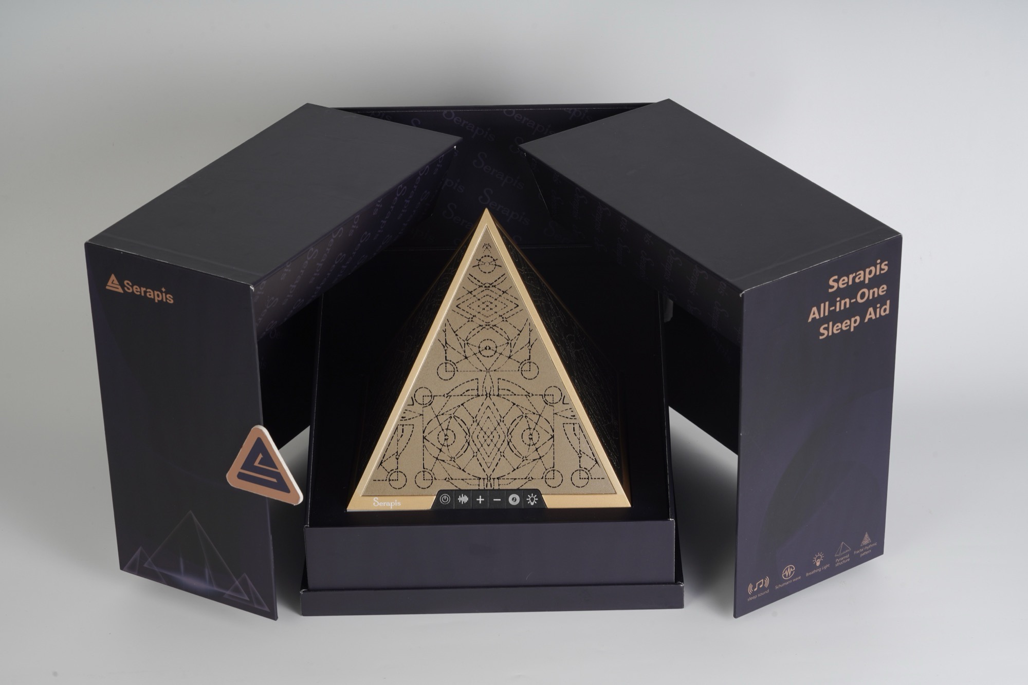 Po drugie, piramida może odtwarzać stały szum o częstotliwości 7,83 Hz, znany jako rezonans Schumanna, który podobno odpowiada falom elektromagnetycznym Ziemi. Po trzecie i ostatnie, Serapis może odtwarzać biały szum w różnych zakresach częstotliwości, co może maskować przeszkadzający hałas otoczenia. To, czy te funkcje faktycznie pomagają użytkownikom zasnąć, może się różnić w zależności od osoby. Piramida jest sterowana za pomocą przycisków z przodu i nie wymaga aplikacji.