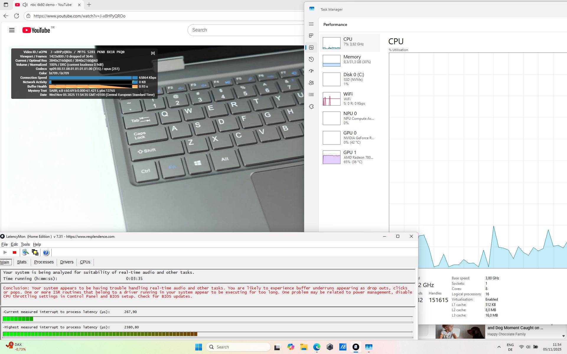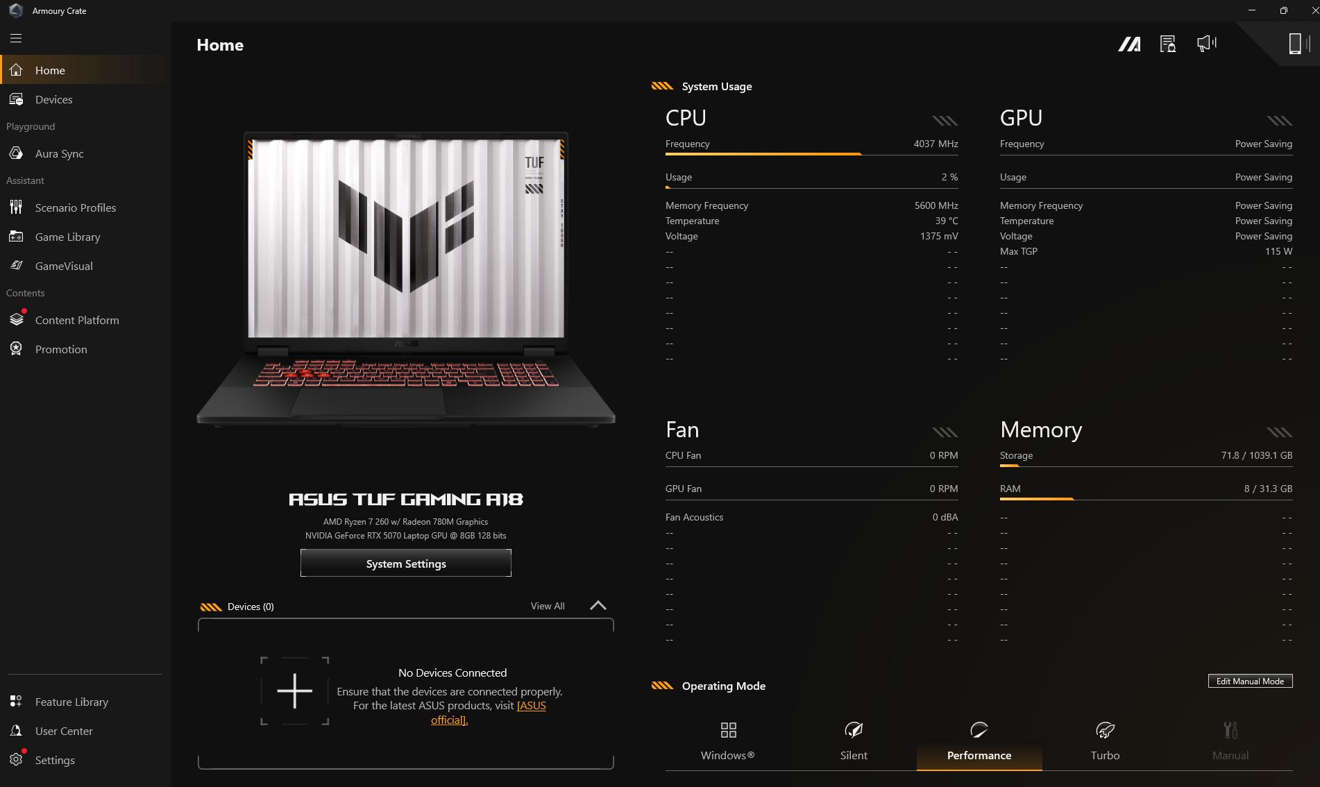 Po podłączeniu HDMI, GPU pozostaje aktywne, a moc w trybie bezczynności skacze do 21 W. W grach, A18 jest bardzo energooszczędny; w trybie Turbo, zużycie energii jest zgodne z innymi modelami RTX 5070.