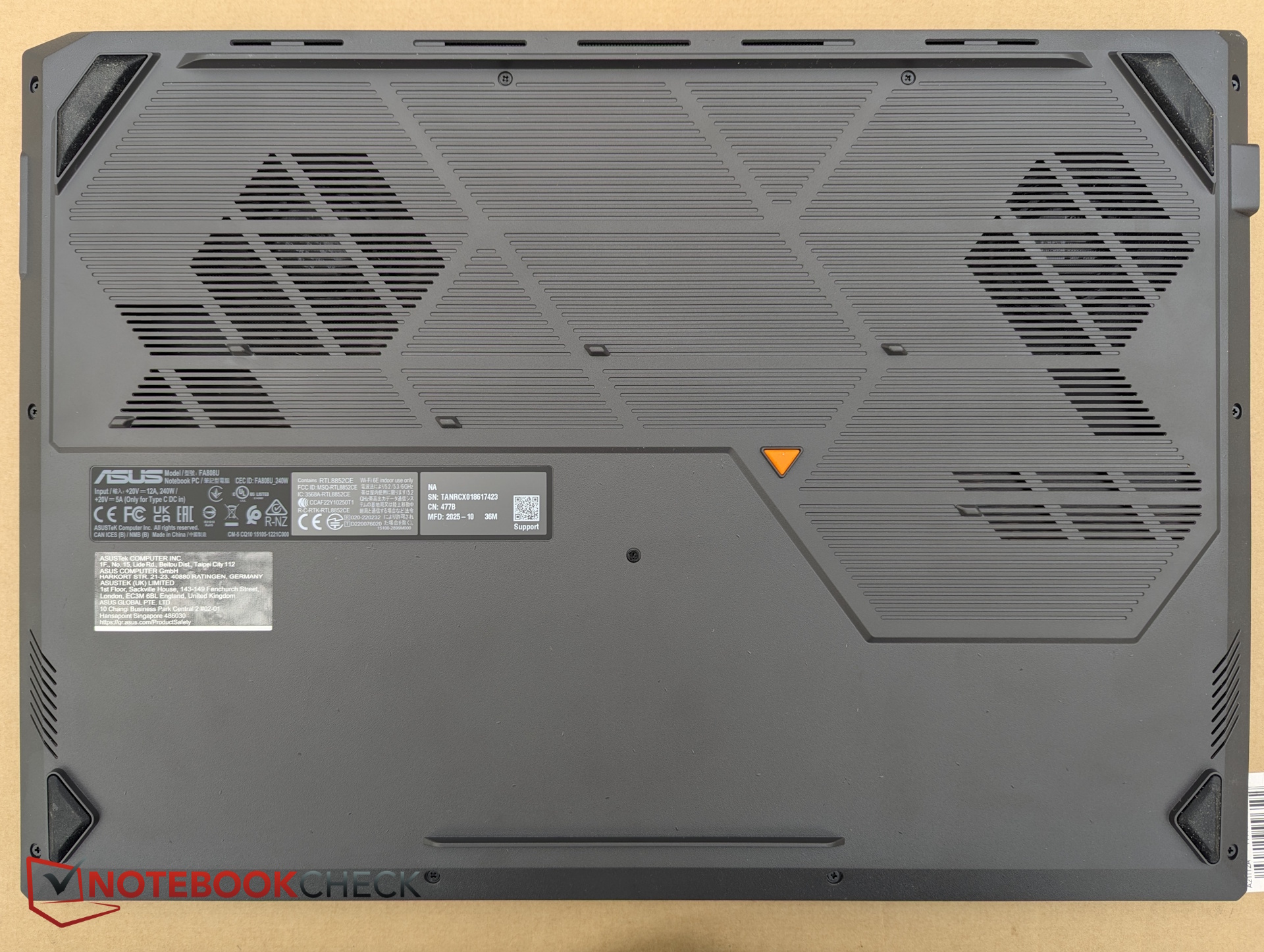 Asus zastosował srebrno-szarą plastikową obudowę. Czarna podstawa nie jest idealnie sztywna, ale pozostaje stabilna podczas pisania. Konstrukcja jest stonowana, obudowa jest dość cienka, a biorąc pod uwagę 18-calową obudowę, jest stosunkowo lekka. Pokrywa otwiera się o pełne 180 stopni.