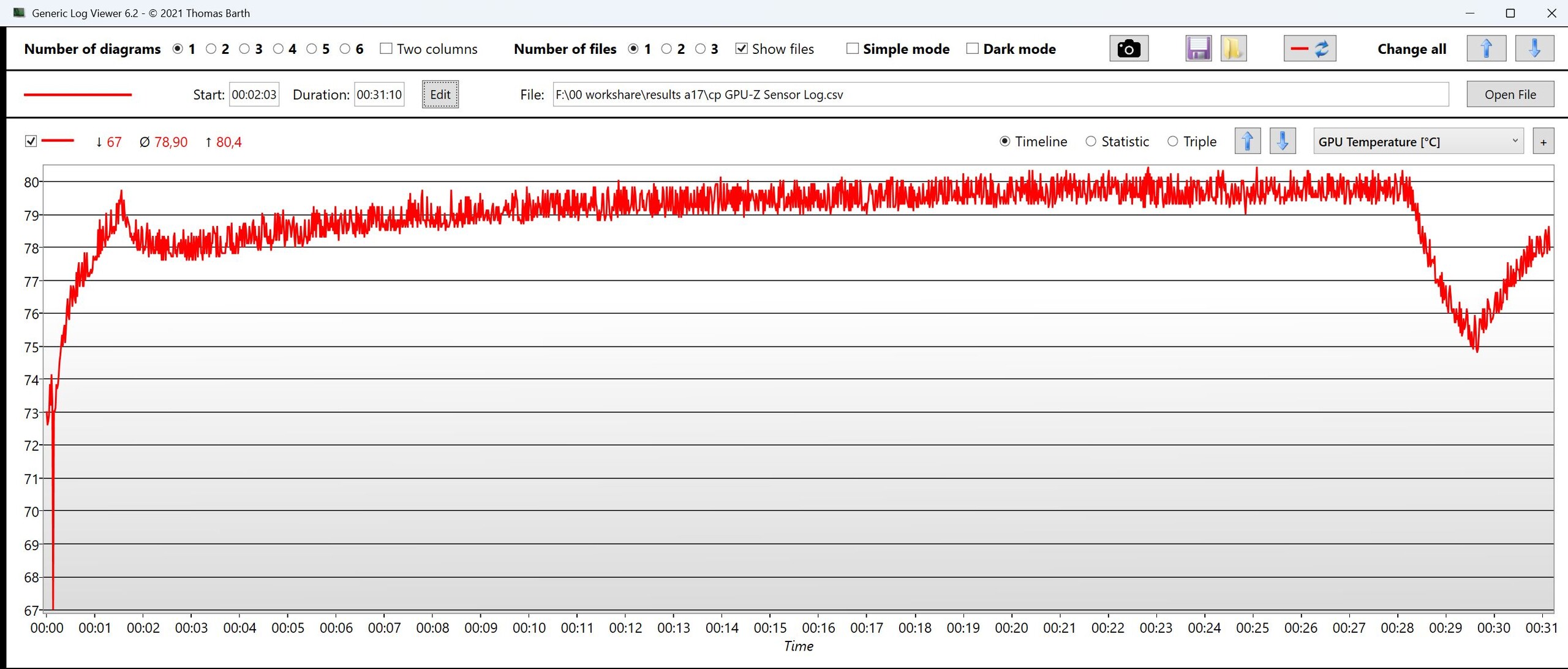 | Turbo | 2,783 | 80 W | 91.7 fps | 82 W | 54.79 dB |