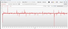 Na baterii system automatycznie przełącza się w tryb cichy z częstotliwością odświeżania 60 Hz. Ręczne przełączenie z powrotem do trybu Wydajność skutkuje takimi samymi wynikami w Cinebench R15, jak po podłączeniu.
