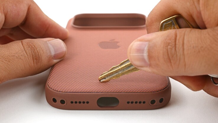 Eksperci od rozbierania na iFixit przetestowali teraz, jak dobrze ten nowy materiał radzi sobie z płynami, brudem i zadrapaniami. Wstępne wrażenie jest całkiem pozytywne. Niezależnie od tego, czy jest to kawa, oliwa z oliwek czy gorący sos, alkohol całkowicie usuwa wszelkie pozostałości. Etui przetrwało również wstępny test zarysowania kluczem bez widocznych uszkodzeń.