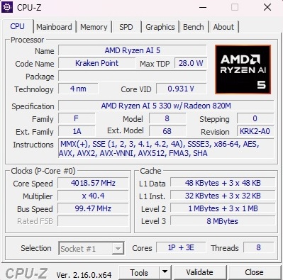 Ryzen Ryzen AI 5 330 należy do generacji Krackan Point 2 i został wyposażony w cztery rdzenie Zen 5 (4 nm) zdolne do jednoczesnej obsługi ośmiu wątków. W naszych testach porównawczych procesorów, AI 5 330 nie tylko wypada gorzej od swojego rodzeństwa, czyli AI 5 340 i AI 7 350czego można było się spodziewać, ale również za Core Ultra 7 255U a nawet Core 7 150U znalezionym w poprzednio testowanym IdeaPad Slim 5 16. Model AMD oferuje jednak ogólnie bardziej spójną wydajność, jak pokazano w pętli Cinebench.